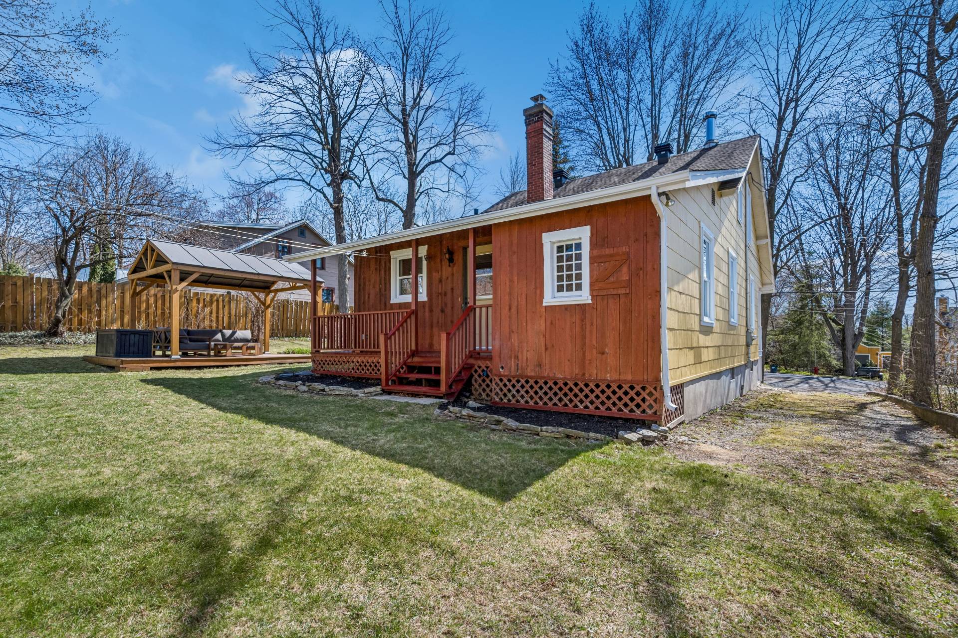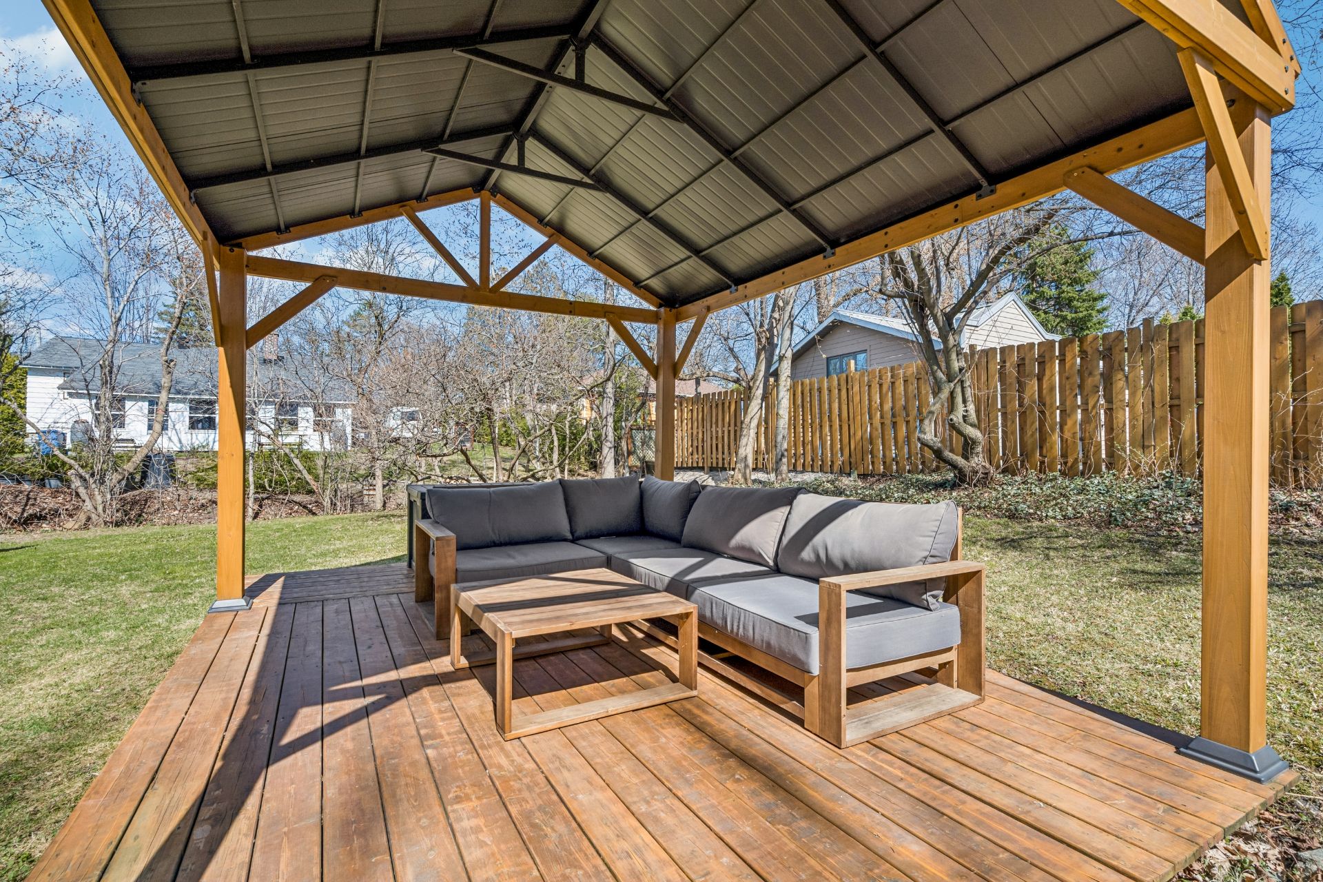 Inclusions : Light fixtures, blinds, kitchen hood, dishwasher, wooden gazebo.
