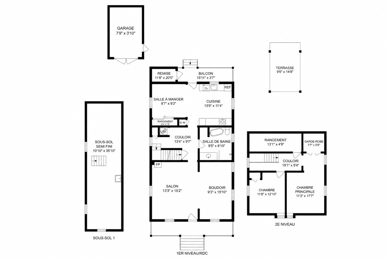 | Partially finished basement | 10.10 x 35.10 P | Basement | Concrete |