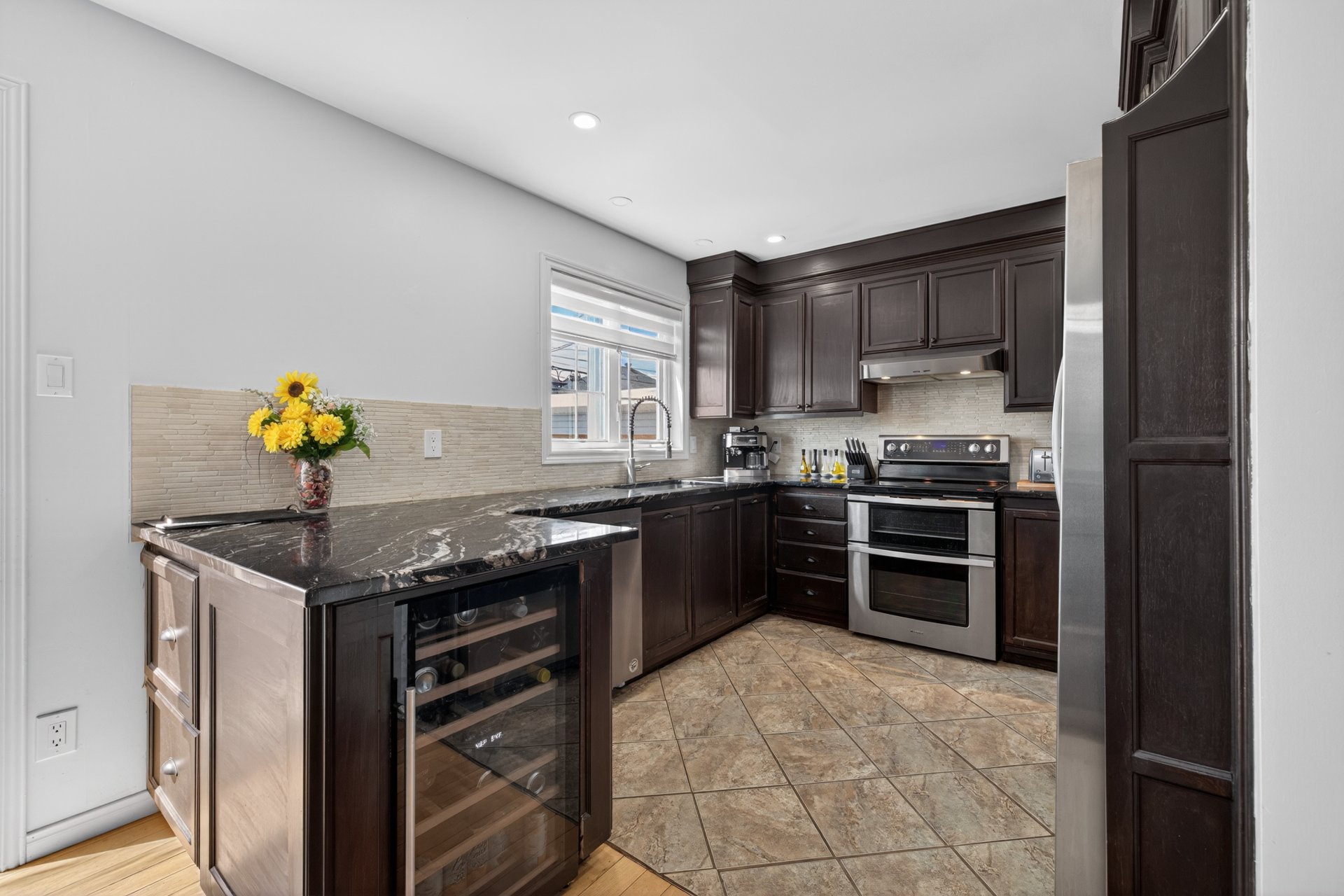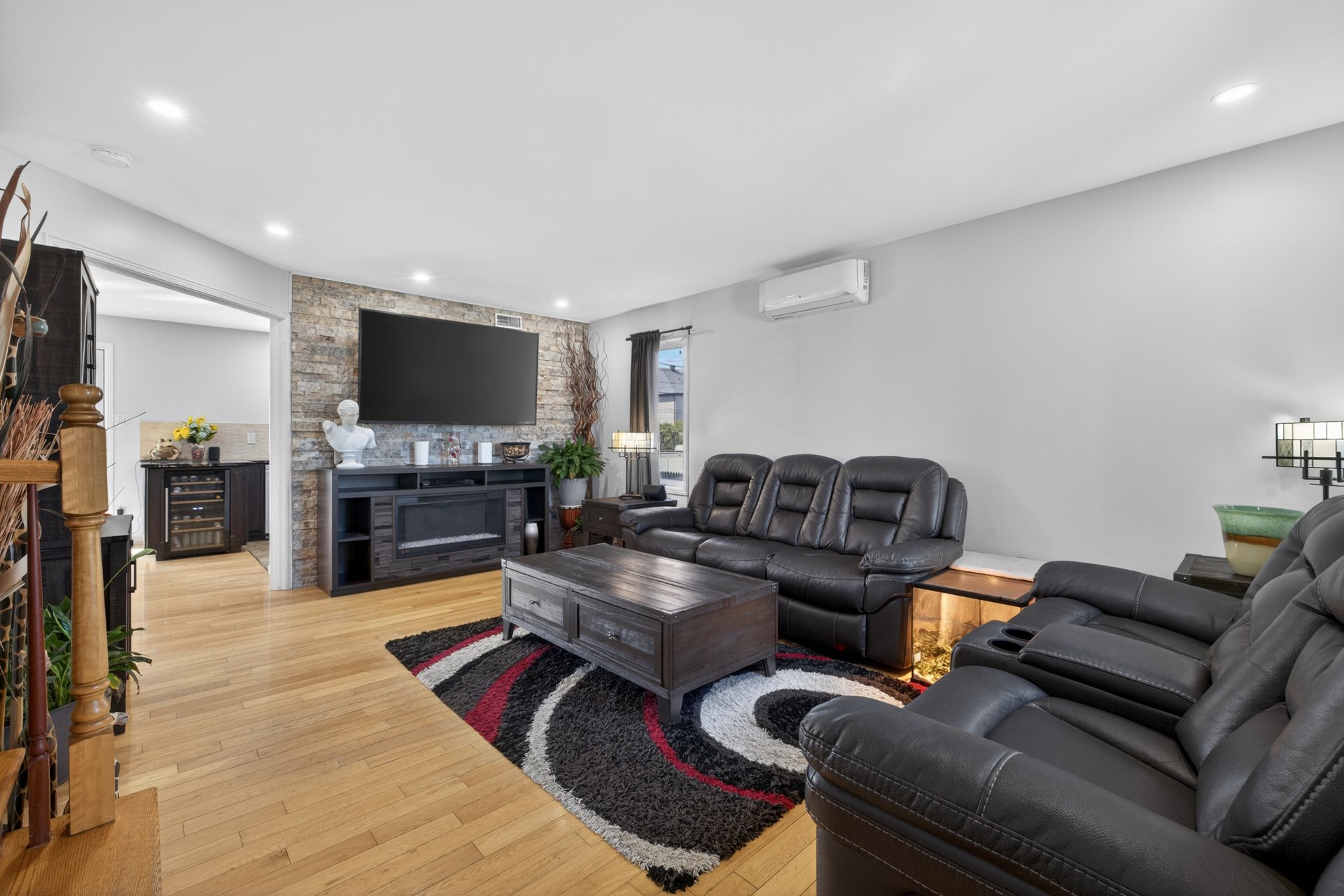 The living spaces are warm and well designed, offering a seamless flow throughout. The kitchen has been upgraded with quartz countertops, combining style and durability. The home also offers abundant storage space, a major asset for everyday organization. An attached garage adds convenience year-round.