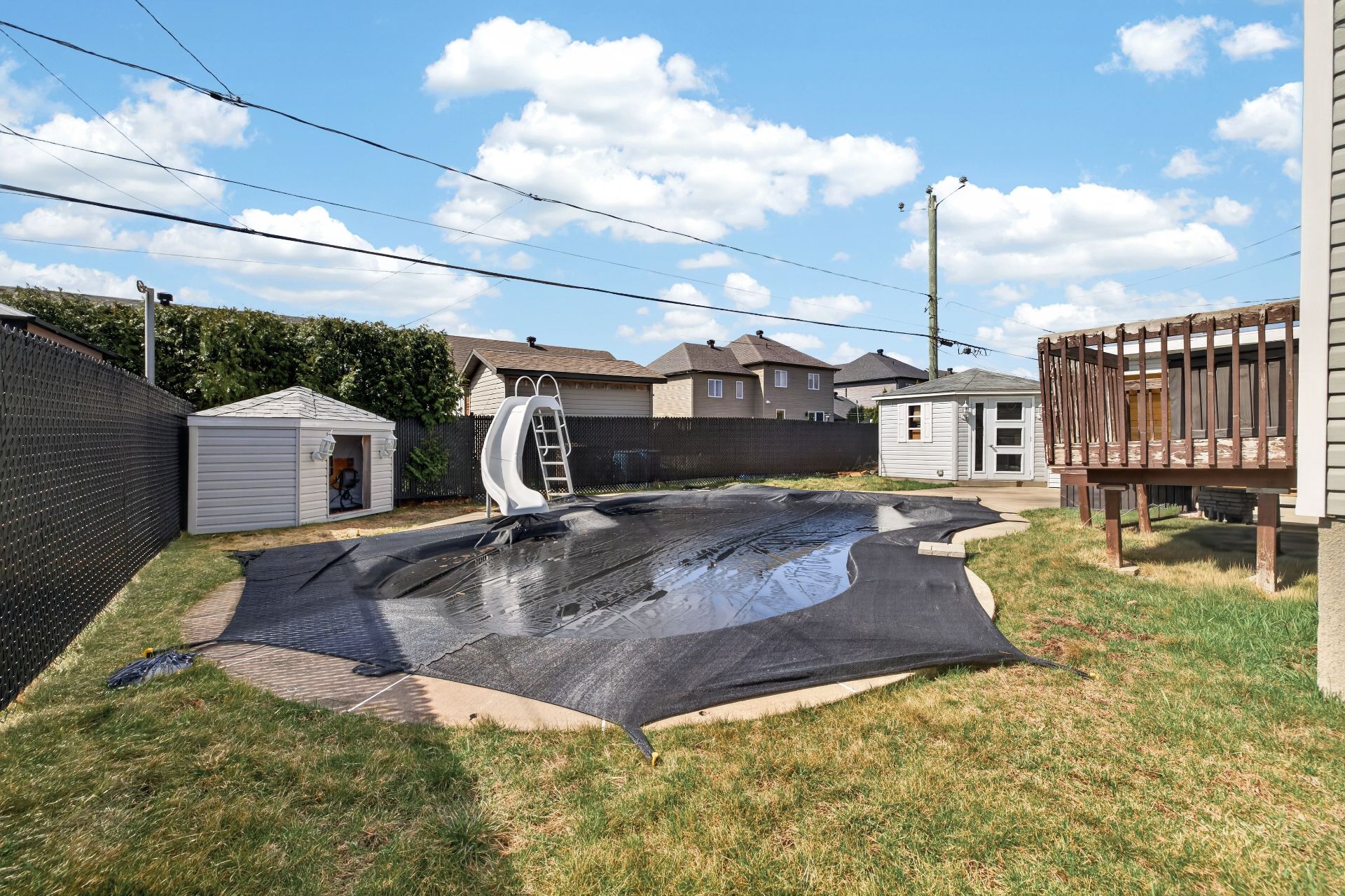 Addition of a full bathroom in the basement Installation of a second wall-mounted heat pump for enhanced comfort Upgrade to quartz countertops Addition of an outdoor shed Installation of a retractable pool safety fence Addition of a French drain for improved water management