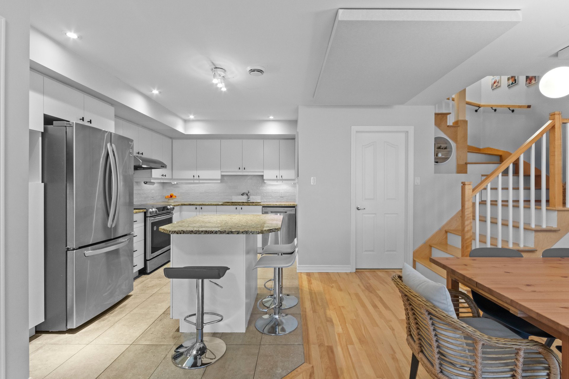 Absolutely charming 3-storey home offering 3 bedrooms, 2.5 bathrooms, and a bright open-concept living space flooded with natural light. Modern kitchen featuring granite countertops, meticulously maintained throughout. Two garages and a stunning front garden complete this perfect picture. A true haven of peace, conveniently located close to all amenities. Come to visit, don't miss out on the opportunity!