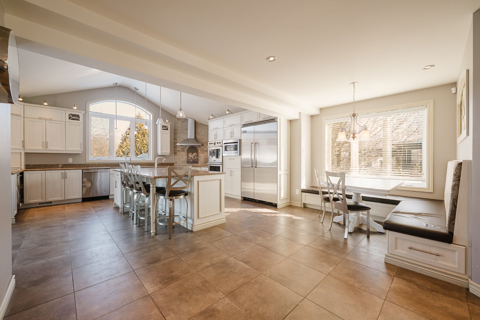 coin repas intégré, vaste îlot central avec 2e évier,