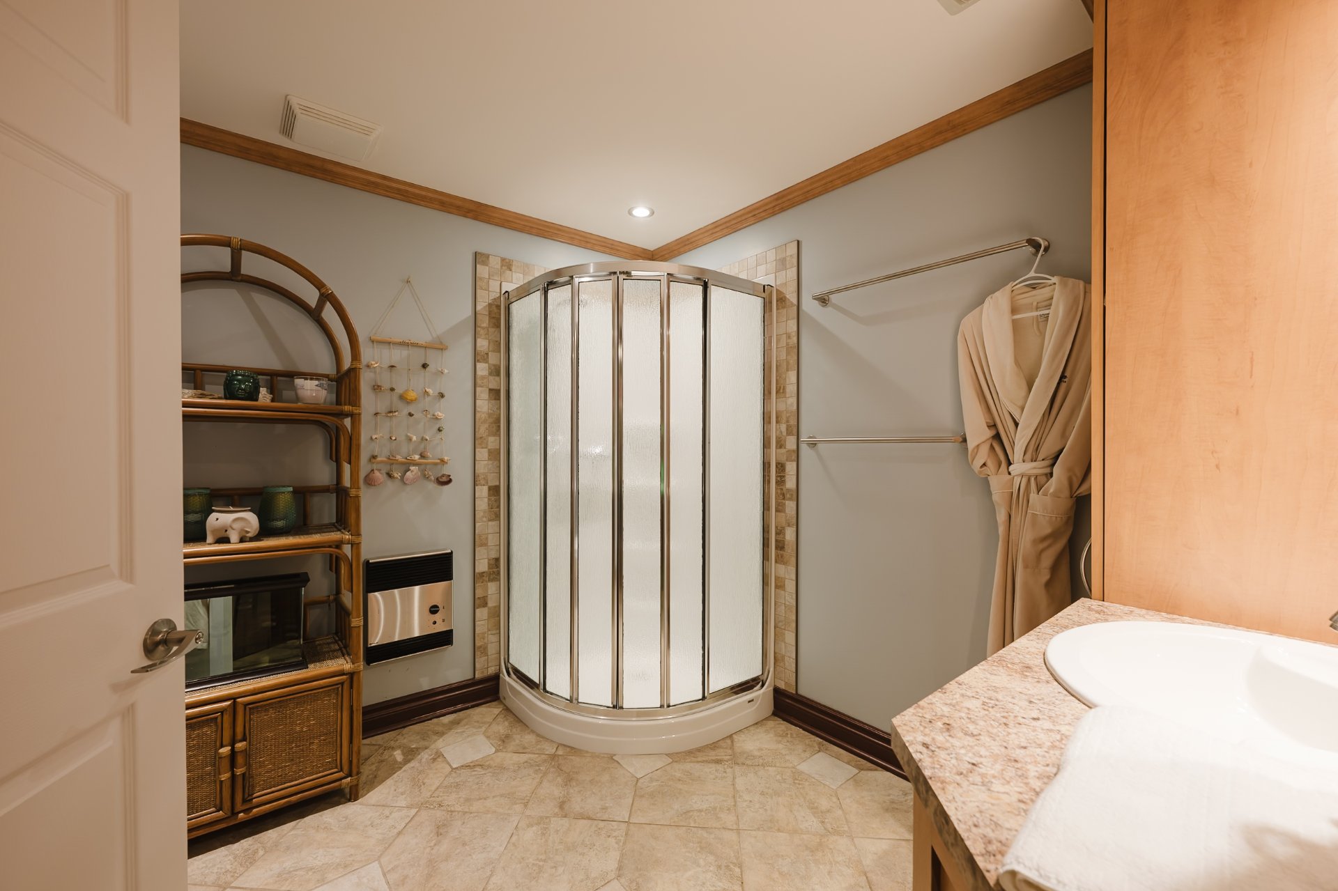 chauffant, bain autoportant, finitions actuelles et douche