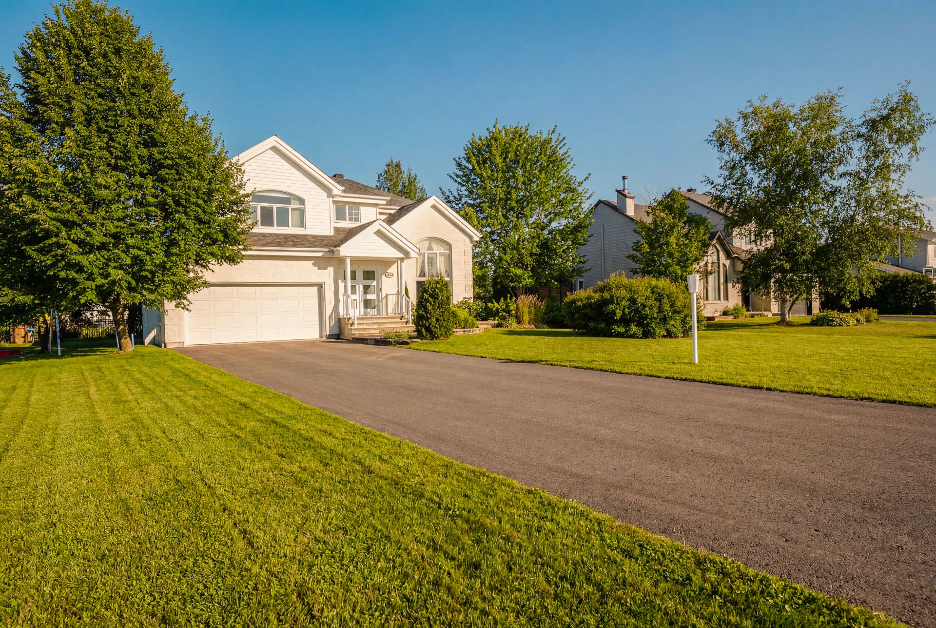 présence élégante et intemporelle. L'allée asphaltée permet