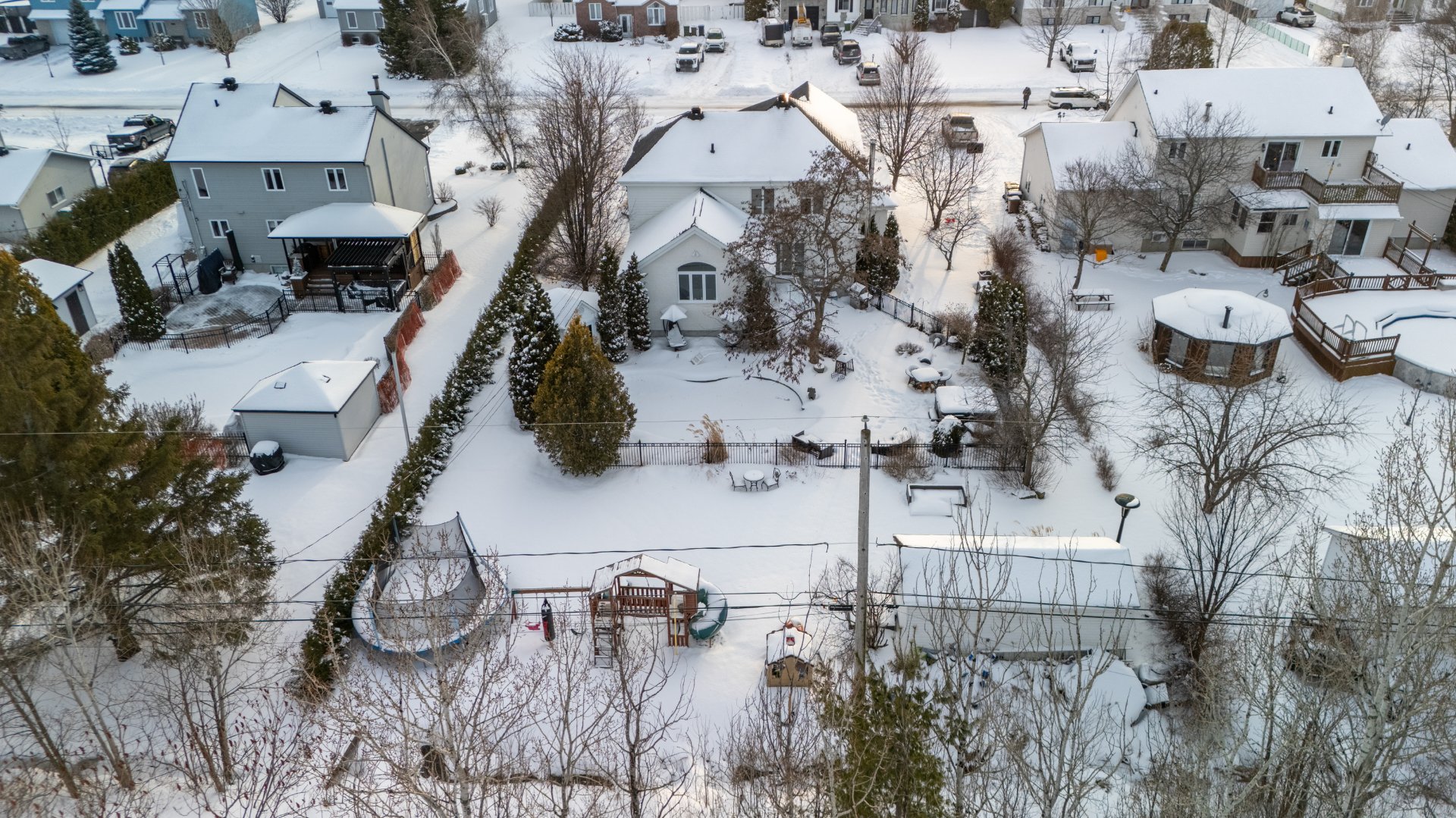 Prestigieuse résidence nichée dans un secteur familial recherché, sans voisin arrière, offrant une intimité rare sur plus de 16 000 pi². La cuisine gastronomique avec plafond cathédrale et coin repas est entièrement équipée avec électroménagers inclus. À l'étage: 4 chambres et une salle de bains de style spa avec douche italienne. 3 espaces de séjour, dont un équipé d'un poêle à bois pour un quotidien confortable, idéal pour recevoir et profiter en famille. Sous-sol aménagé permettant l'ajout d'une 5e chambre ou d'un gym à domicile. L'extérieur est soigneusement aménagé avec piscine creusée, espace détente et jardin pour les enfants.