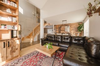 séjour spectaculaire, rehaussé d'un plafond cathédrale qui