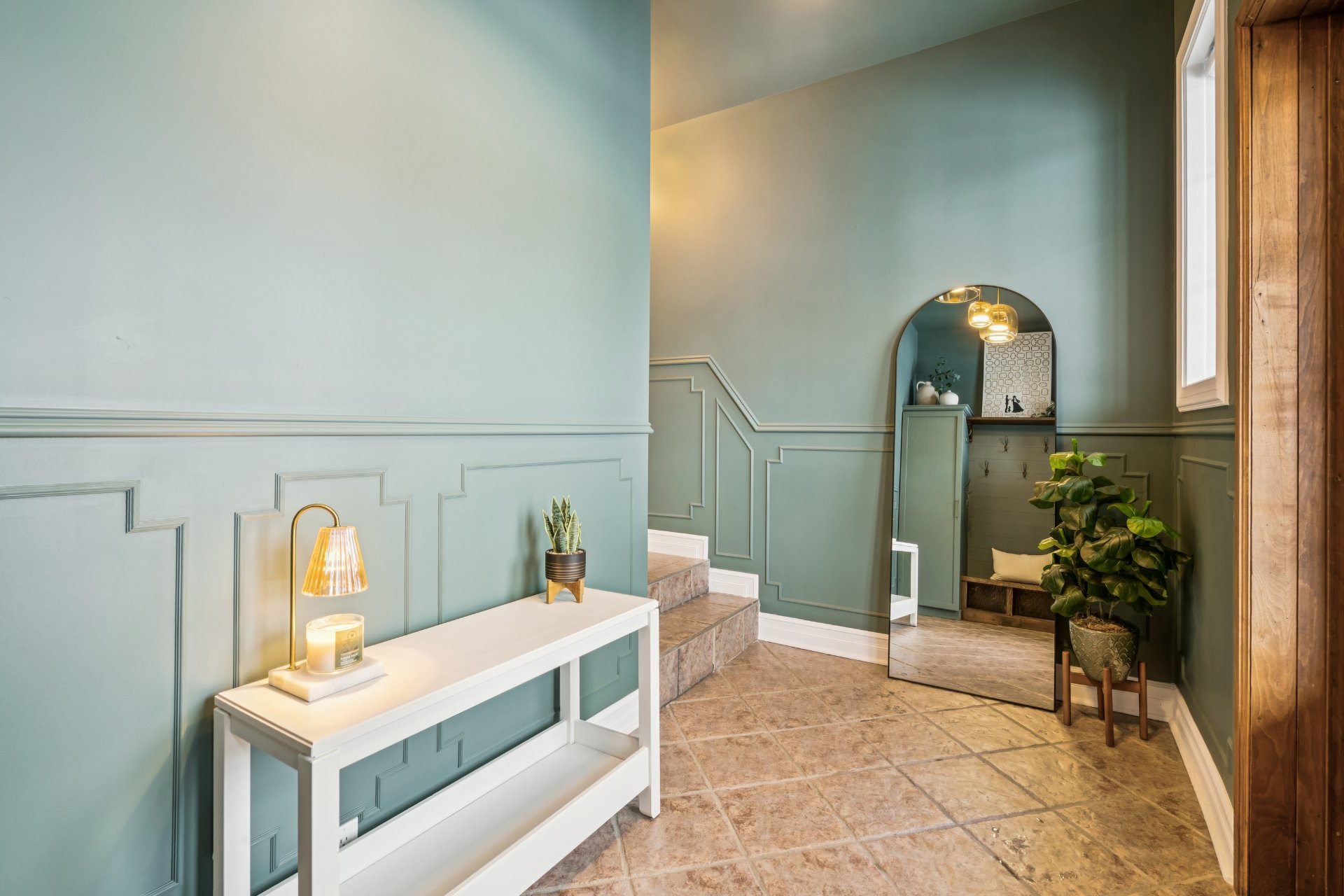 - Hall d'entrée vaste et bien aménagé avec banc d'entrée,