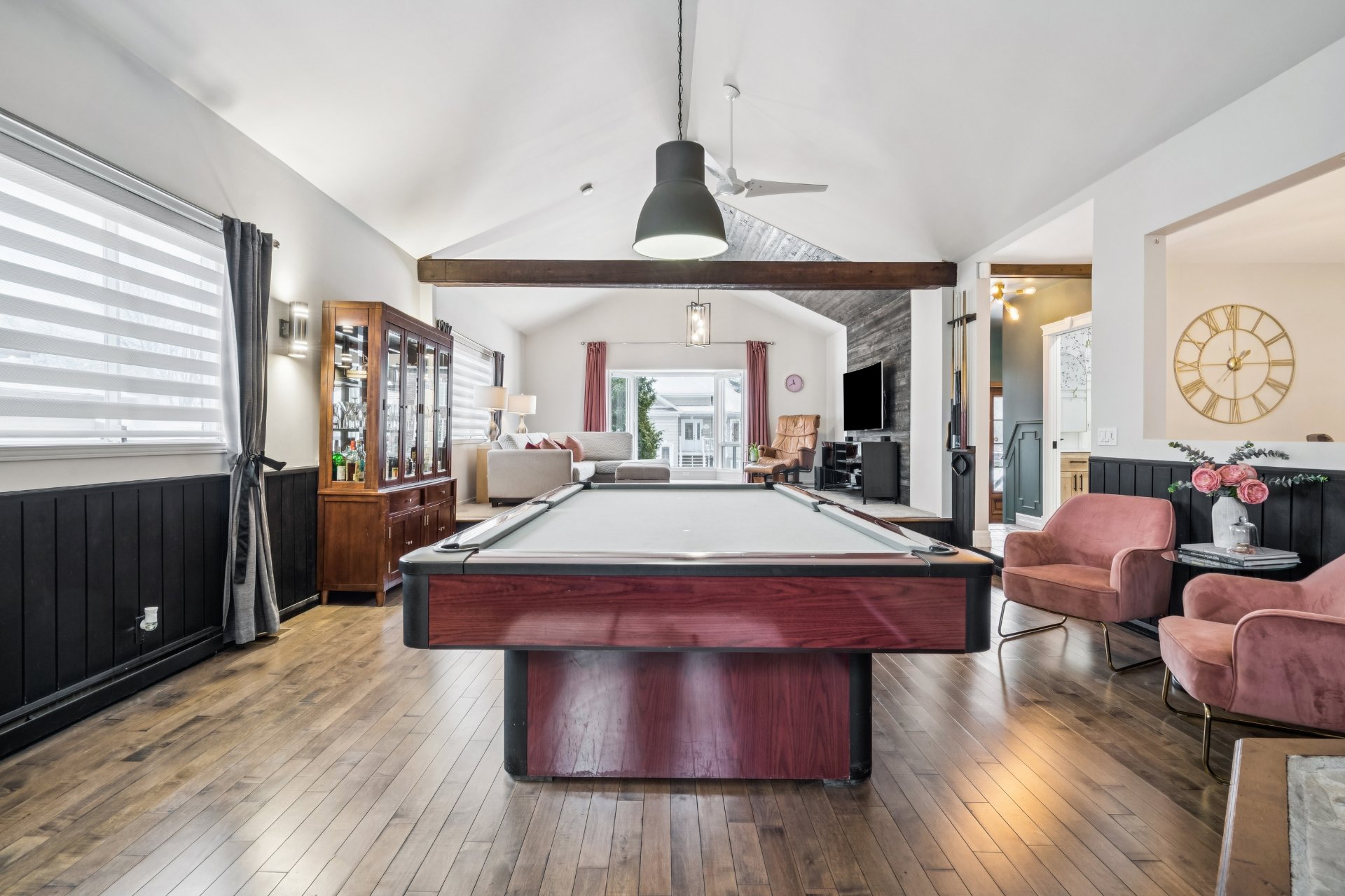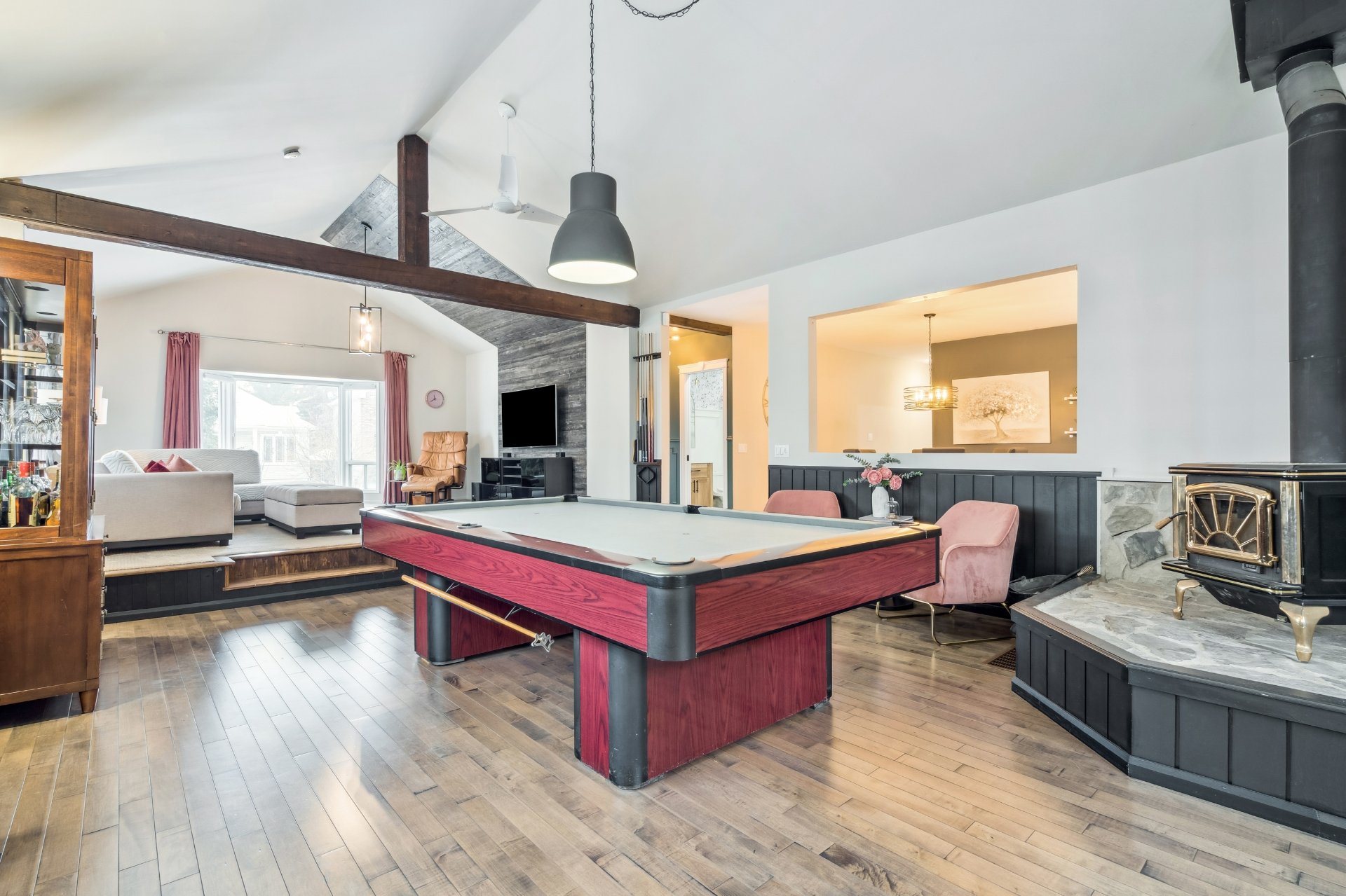 - splendide salle familiale avec foyer, table de billard,