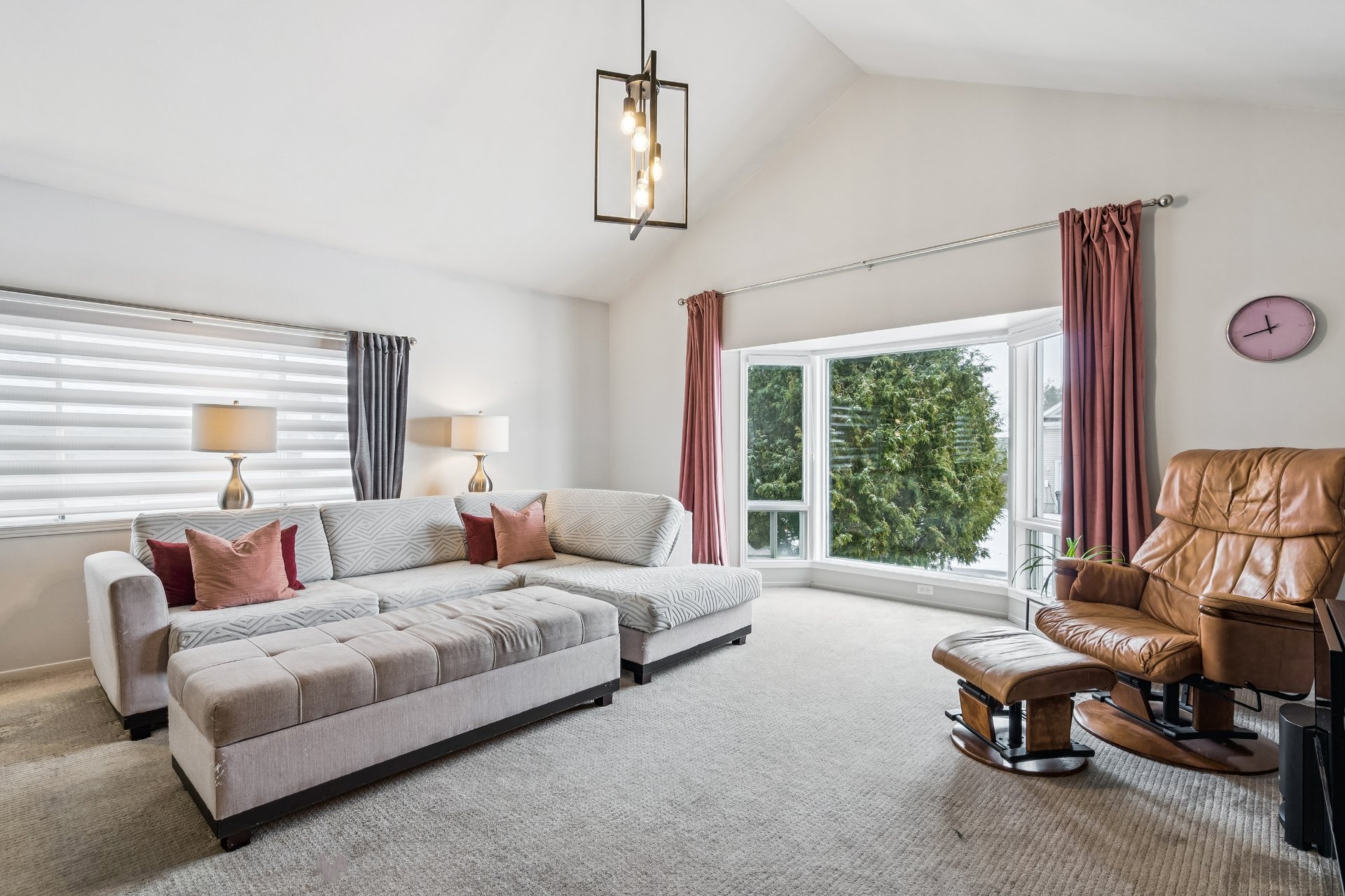 et vaste salon très éclairé, avec plafond cathédral de 13