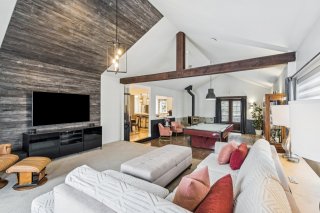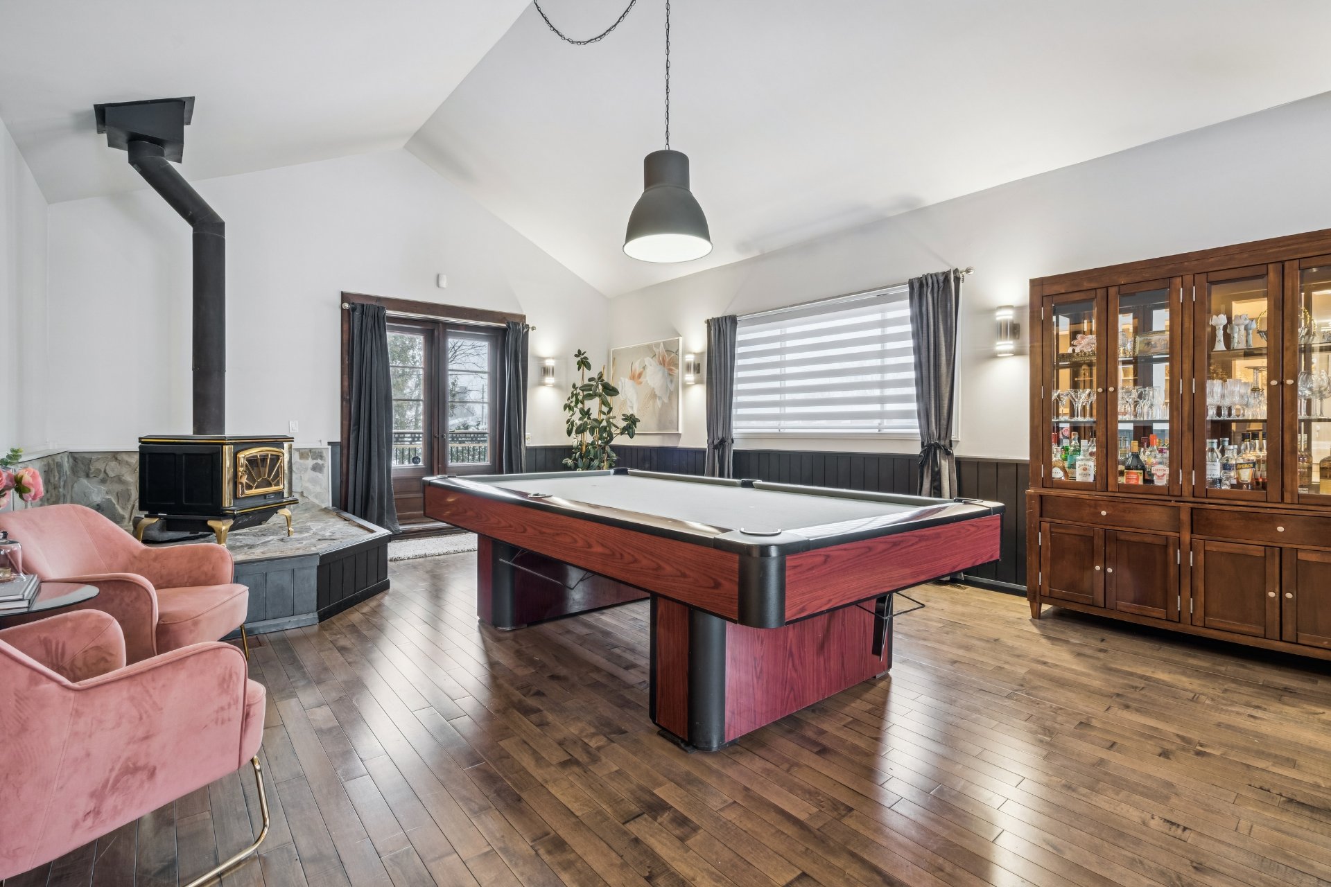 Inclus : Fixtures et luminaires, stores et rideaux, lave-vaisselle, table de billard du RDC, aspirateur central et accessoires, cabane pour enfants dans la cour, 2 gazebos (spa et balcon), 2 lits mezzanine d'enfants, borne de recharge pour véhicule électrique FLO X3.
