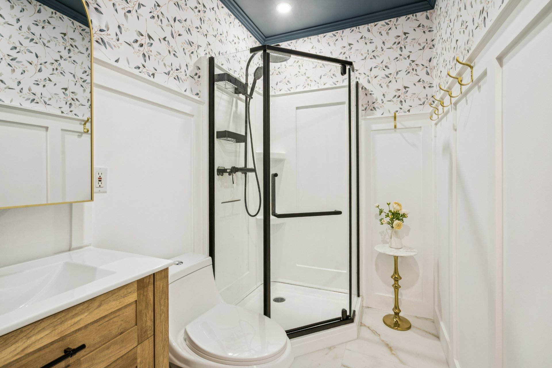 avec douche en verre. La 2e salle de bain attenante à la