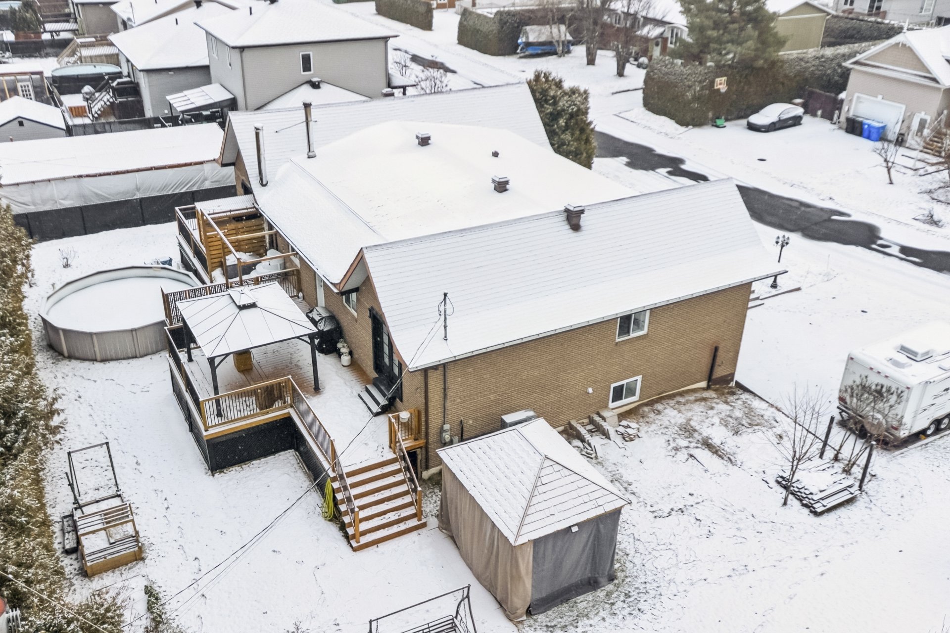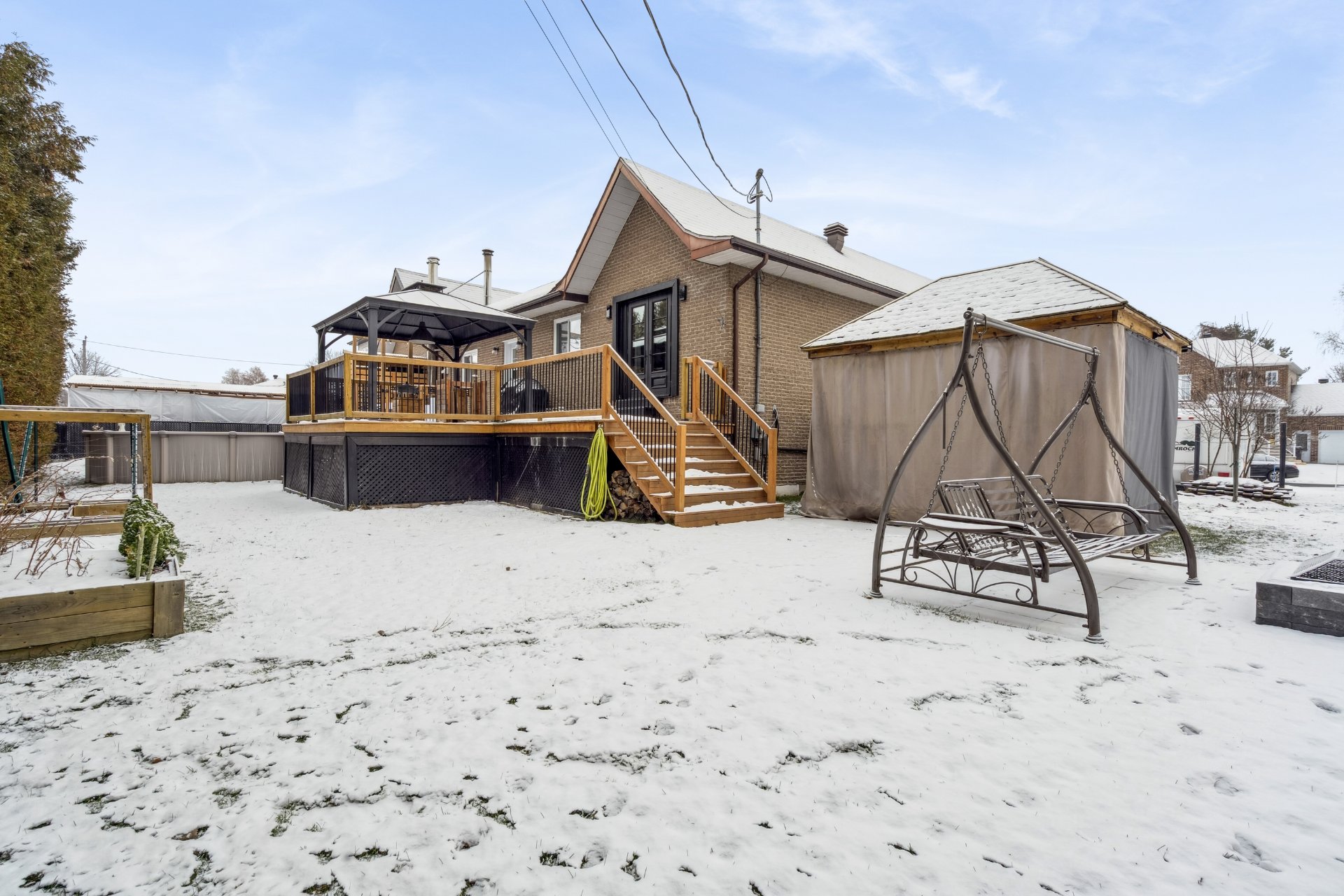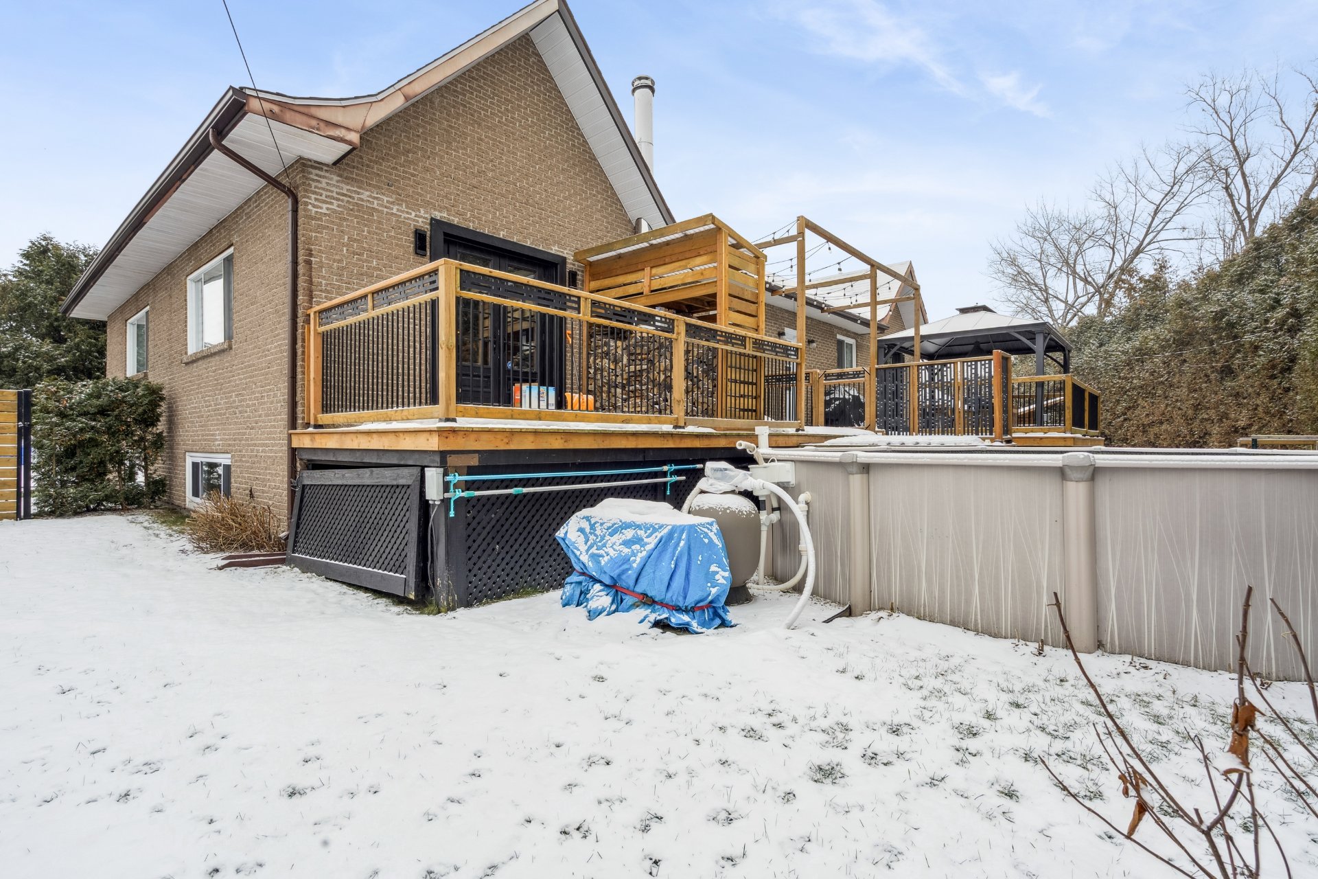 paysagé et aménagé avec 2 gazebos, une piscine hors terre,