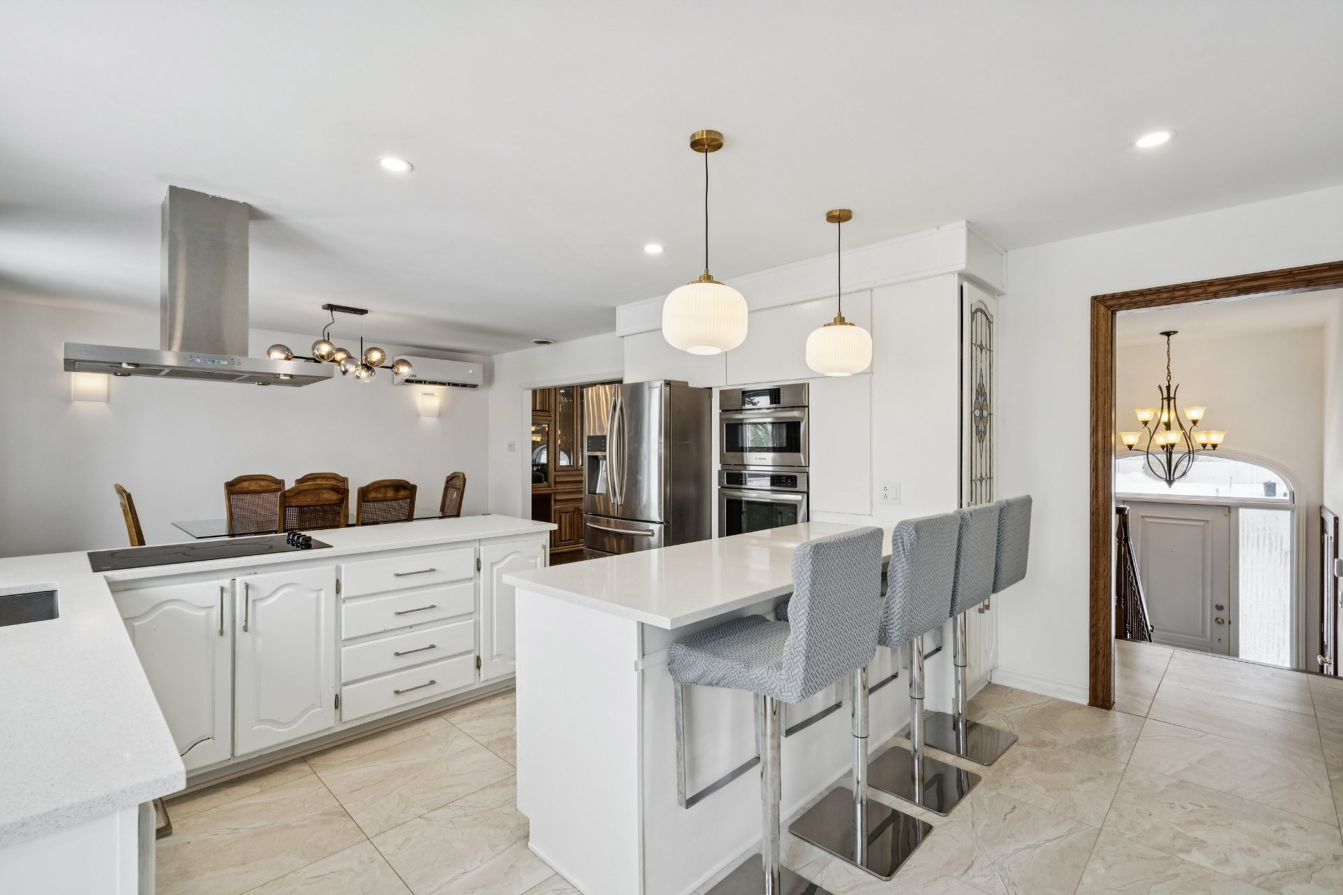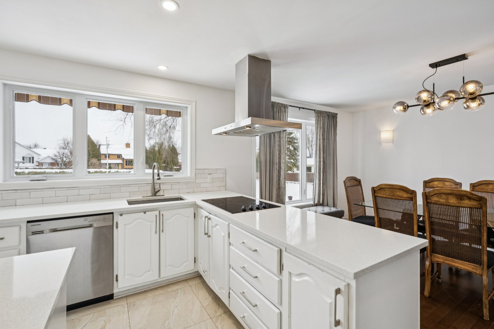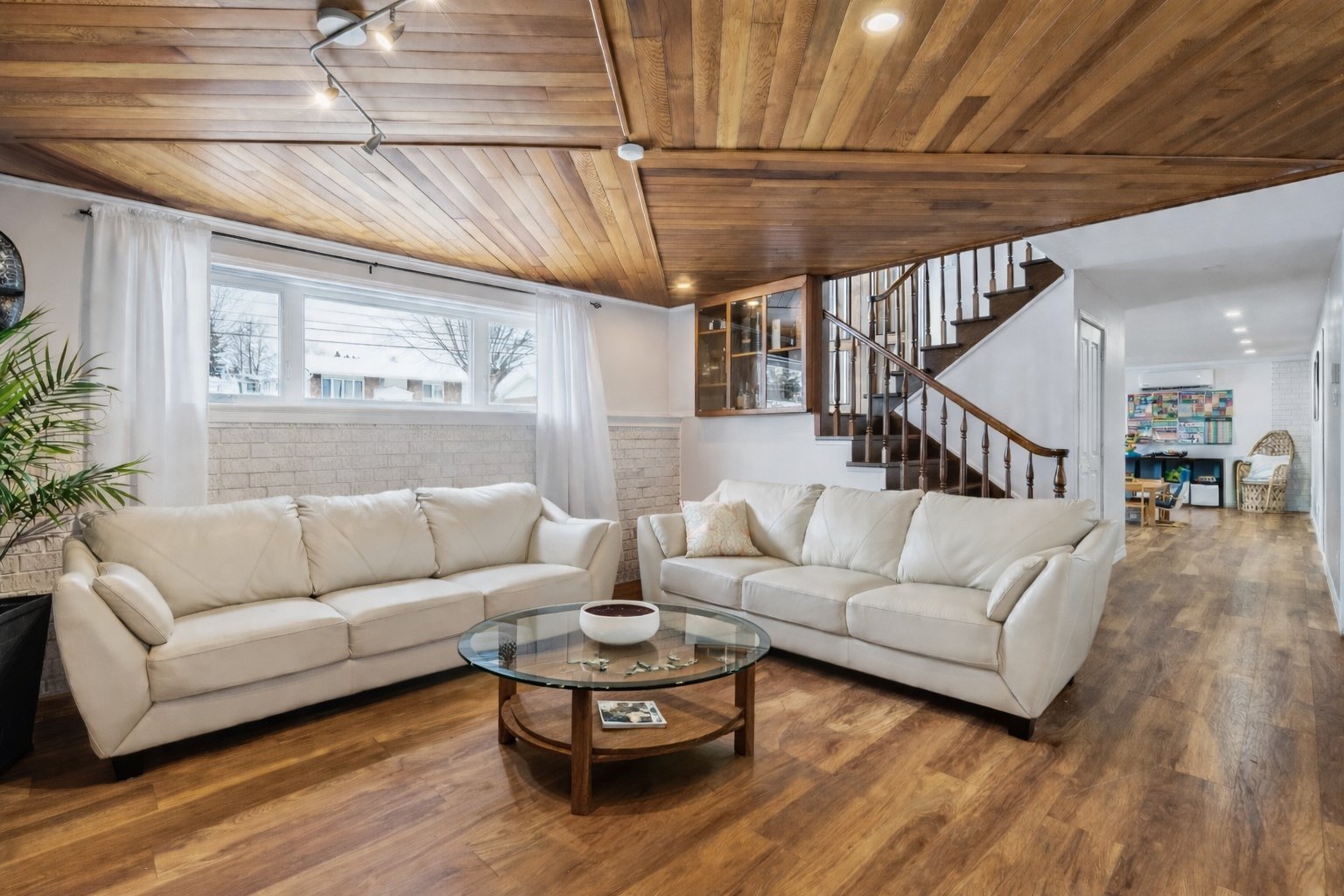 Inclus : Lave-vaisselle, four et micro-ondes encastrés, plaque de cuisson à induction, les deux thermopompes, rangement IKEA dans la chambre du sous-sol, piscine hors terre et son chauffe-eau (tous deux fonctionnels, sans garantie; la toile de fond de la piscine nécessite un remplacement), ainsi que les stores de la chambre principale et de la salle de bain du rez-de-chaussée.