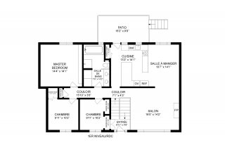 | Chambre à coucher principale | 14.4 x 14.1 P | Rez-de-chaussée | Bois |