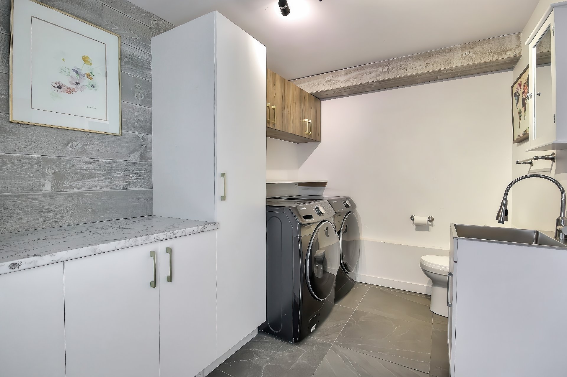 Inclus : Laveuse, sécheuse, cuisinière, lave-vaisselle, Miroir à l'entrée, Étagères de rangement au sous-sol, BBQ
