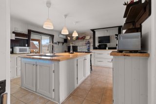 À l'intérieur, la propriété propose 4 chambres à coucher de belles dimensions ainsi qu'une cuisine tout simplement spectaculaire : fonctionnelle, élégante et offrant un maximum de rangement, pensée pour les amateurs de cuisine et les grandes tablées.