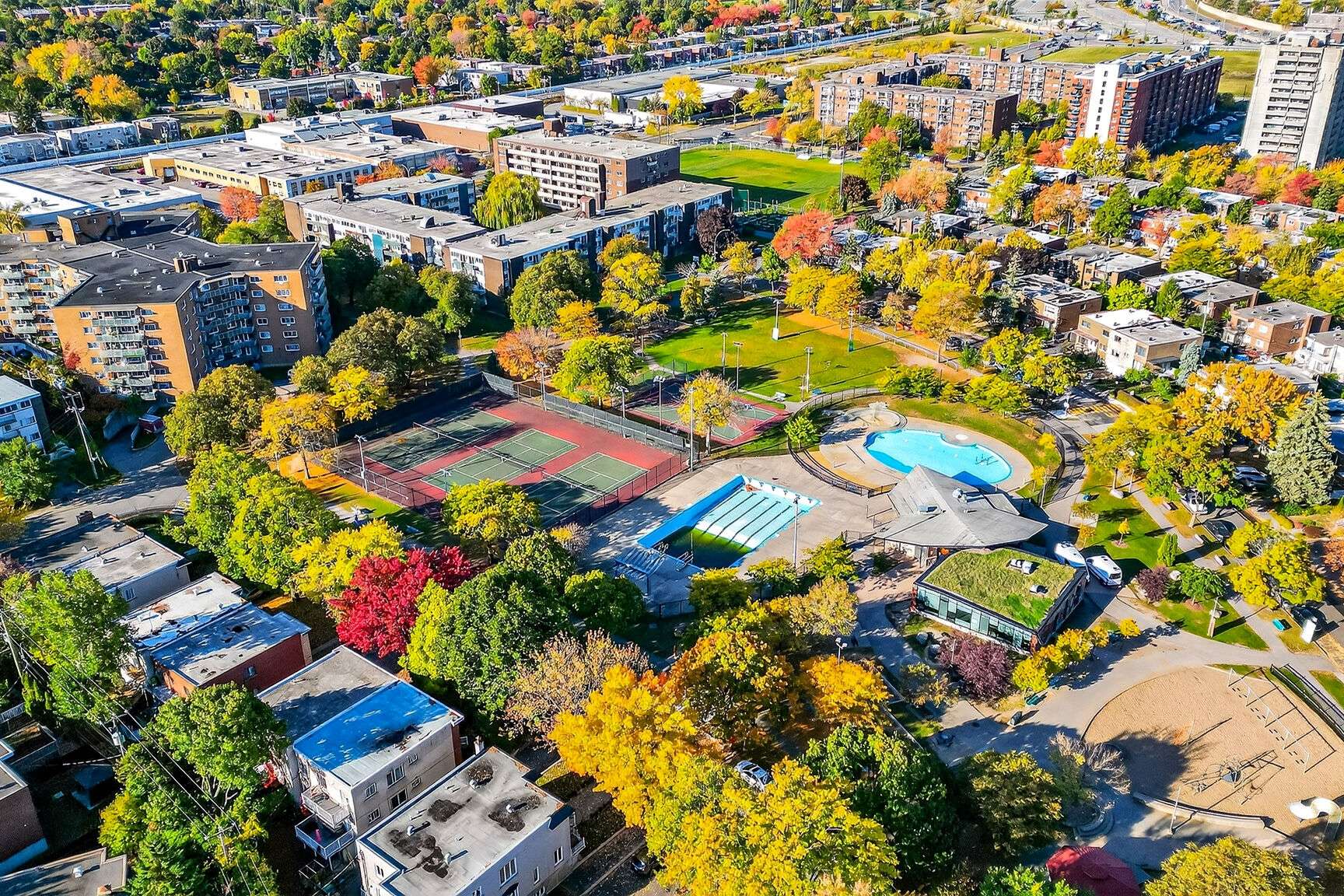 d'un grand parc avec piscine, courts de tennis et terrain