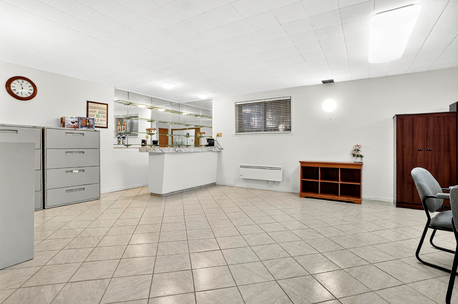 rez-de-chaussée offre beaucoup de rangement et un accès