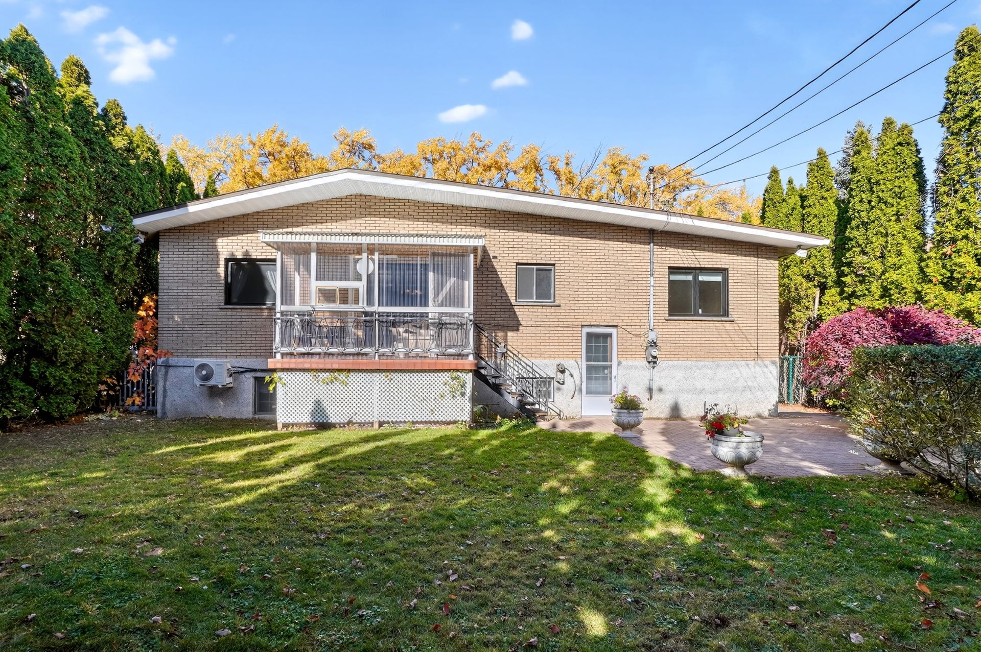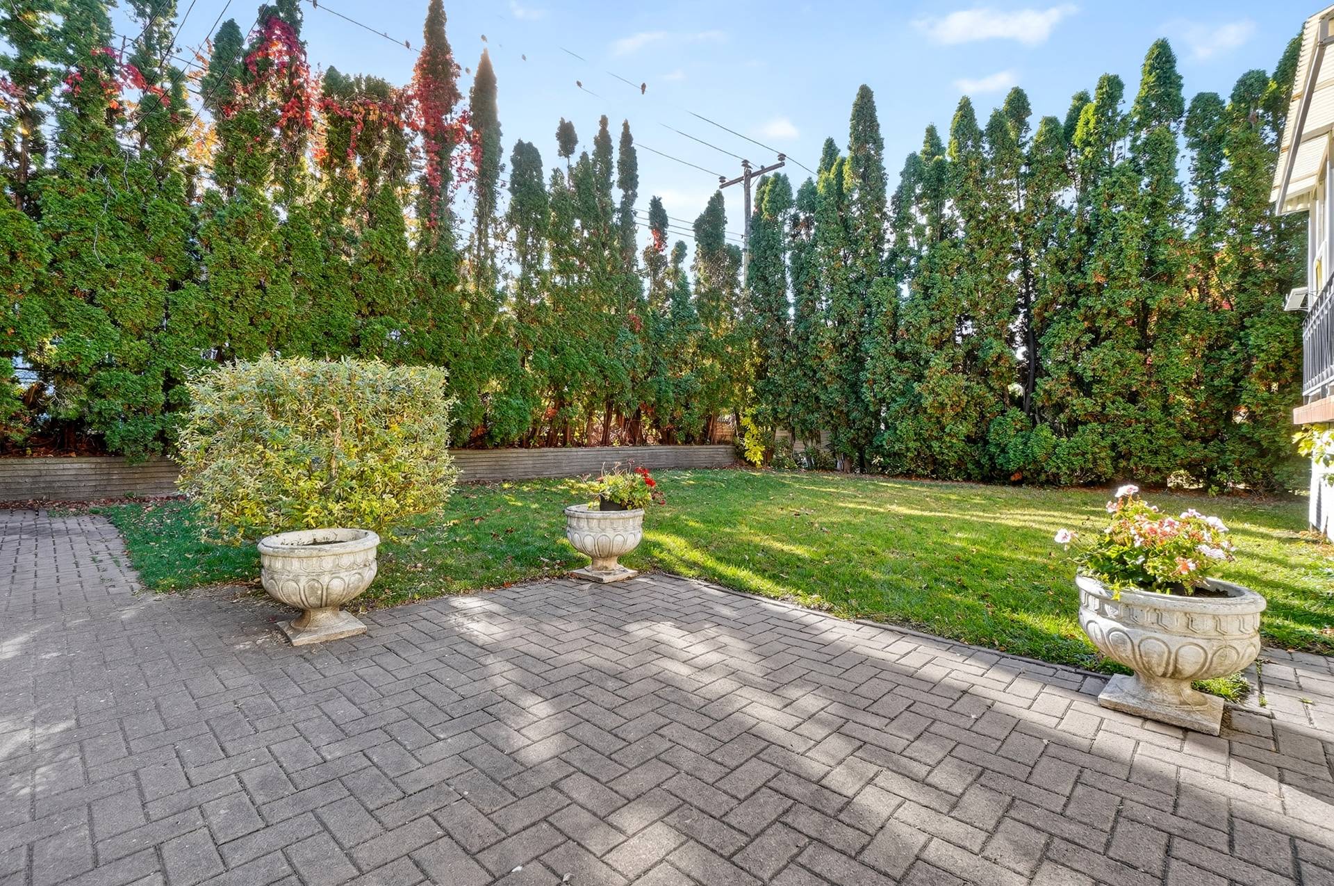-Cour arrière intime bordée de grands cèdres