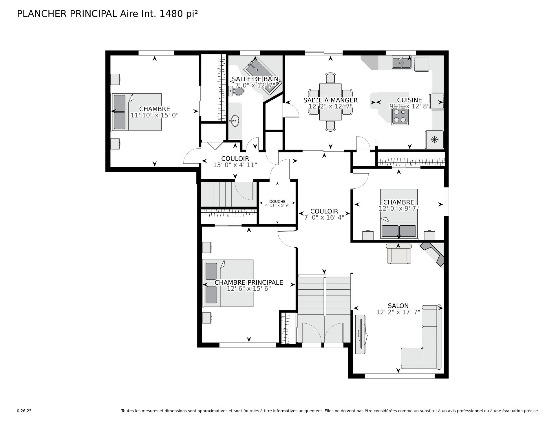 | Salon | 12.5 x 17.9 P | Rez-de-chaussée | Bois |