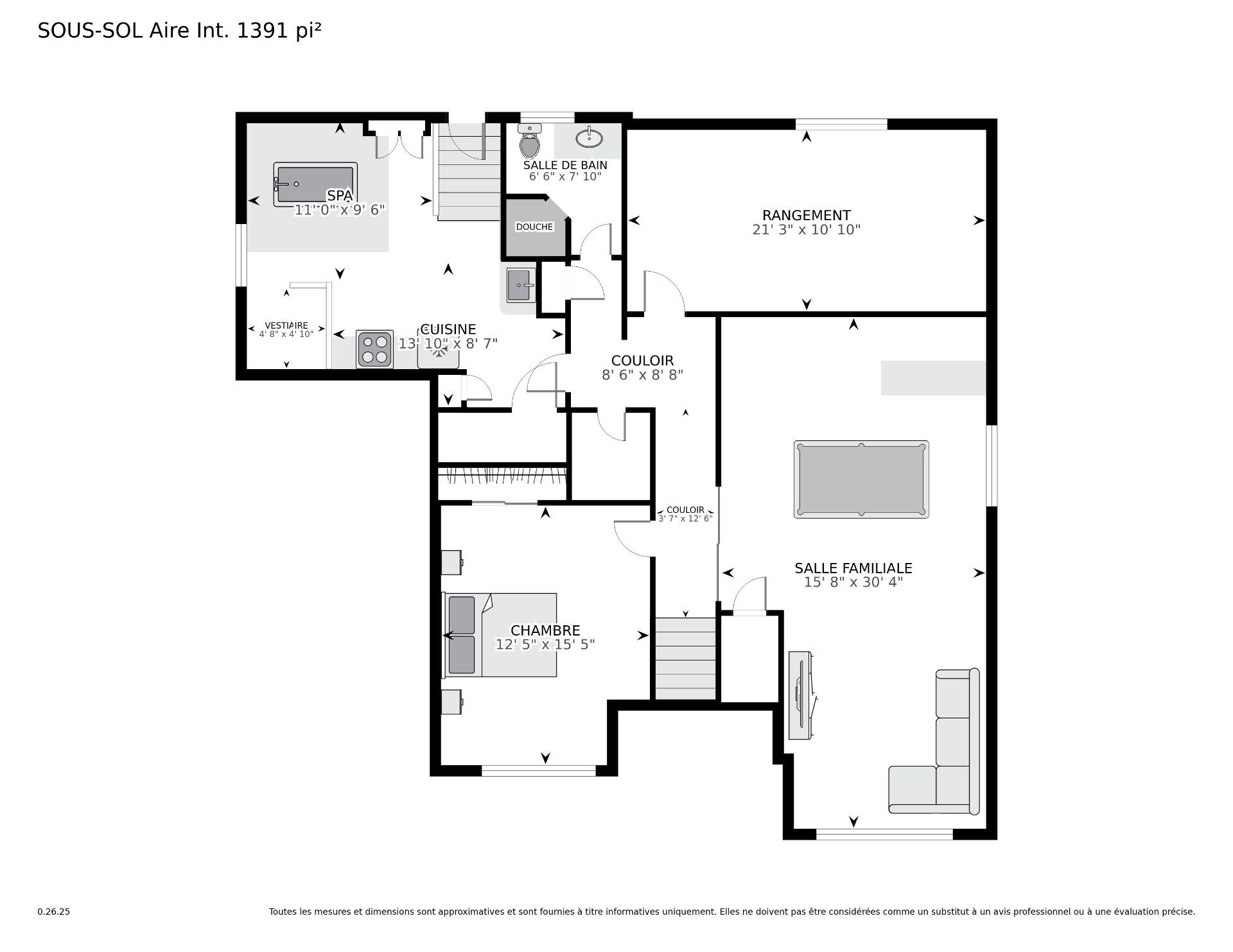 | Salle familiale | 15.9 x 31.3 P | Sous-sol | Céramique |