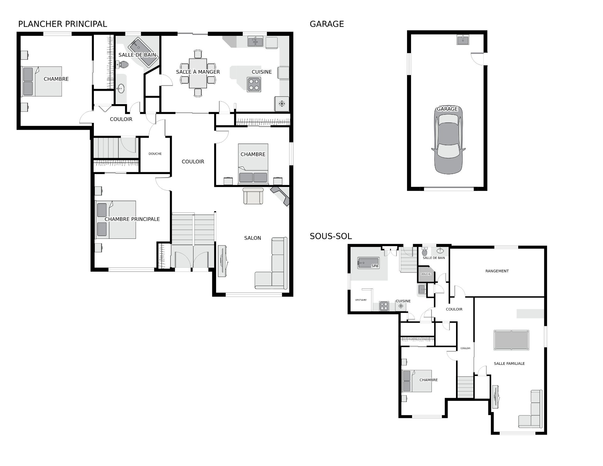 supplémentaires ou un gym, atelier, salle de jeux ou cinéma