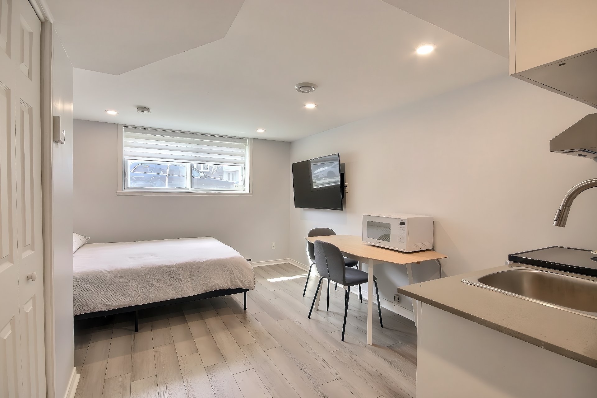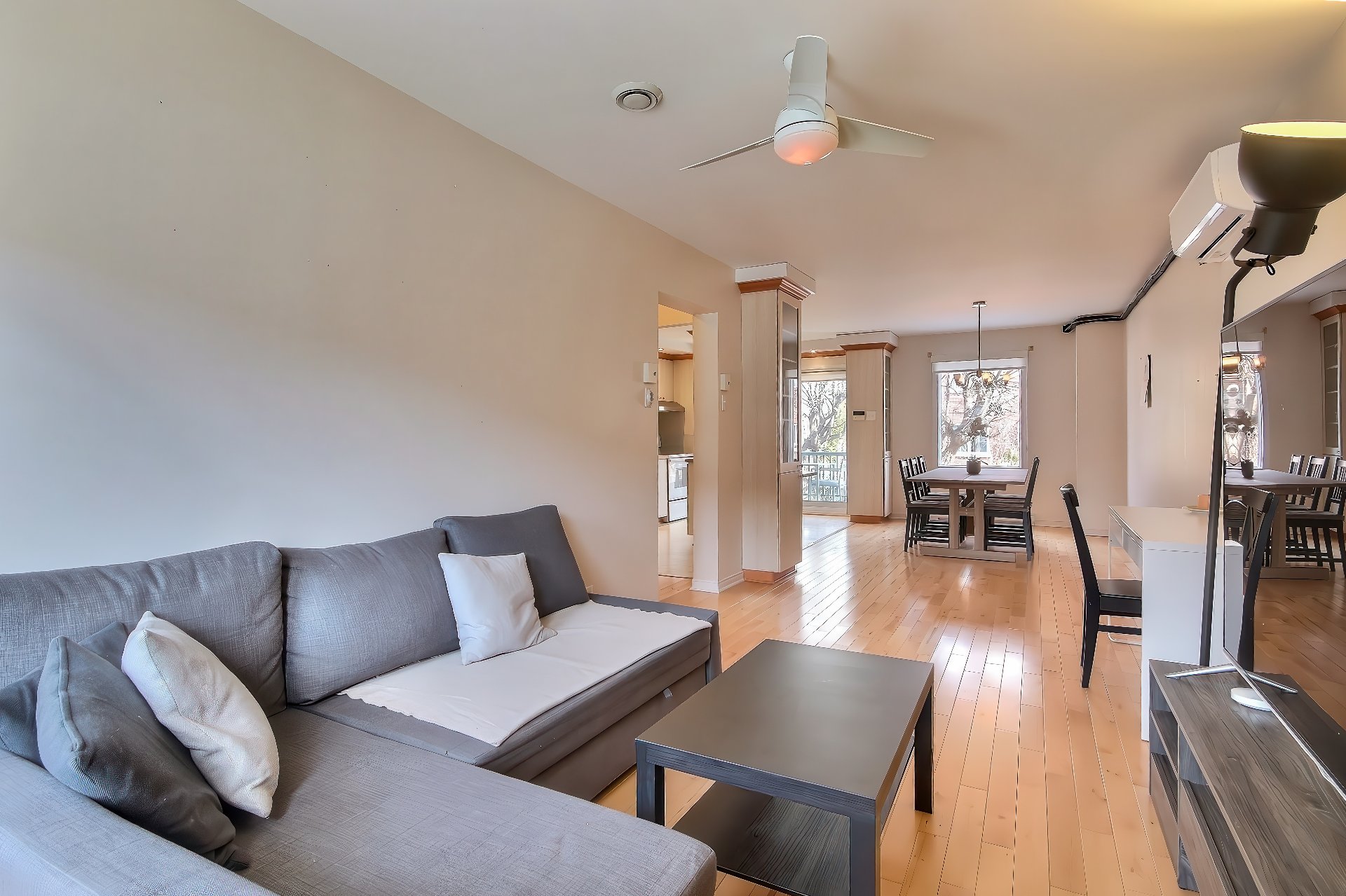 4 unités entièrement vacantes ! Le logement du RDC comprend 2 chambres à coucher, salon, cuisine et salle à manger à aire ouverte, air climatisé mural!