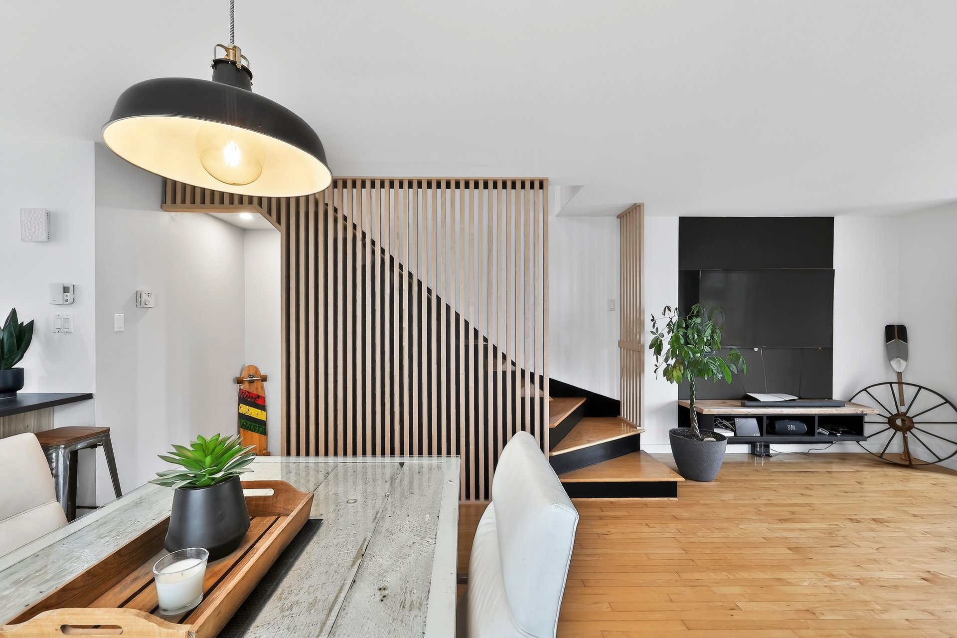 À l'étage, vous trouverez deux chambres de bonnes dimensions baignées de lumière naturelle, ainsi qu'une salle de bain complète conçue pour allier fonctionnalité et confort. Sa position en unité de coin procure une abondance de lumière et une intimité accrue, un atout rare en copropriété.