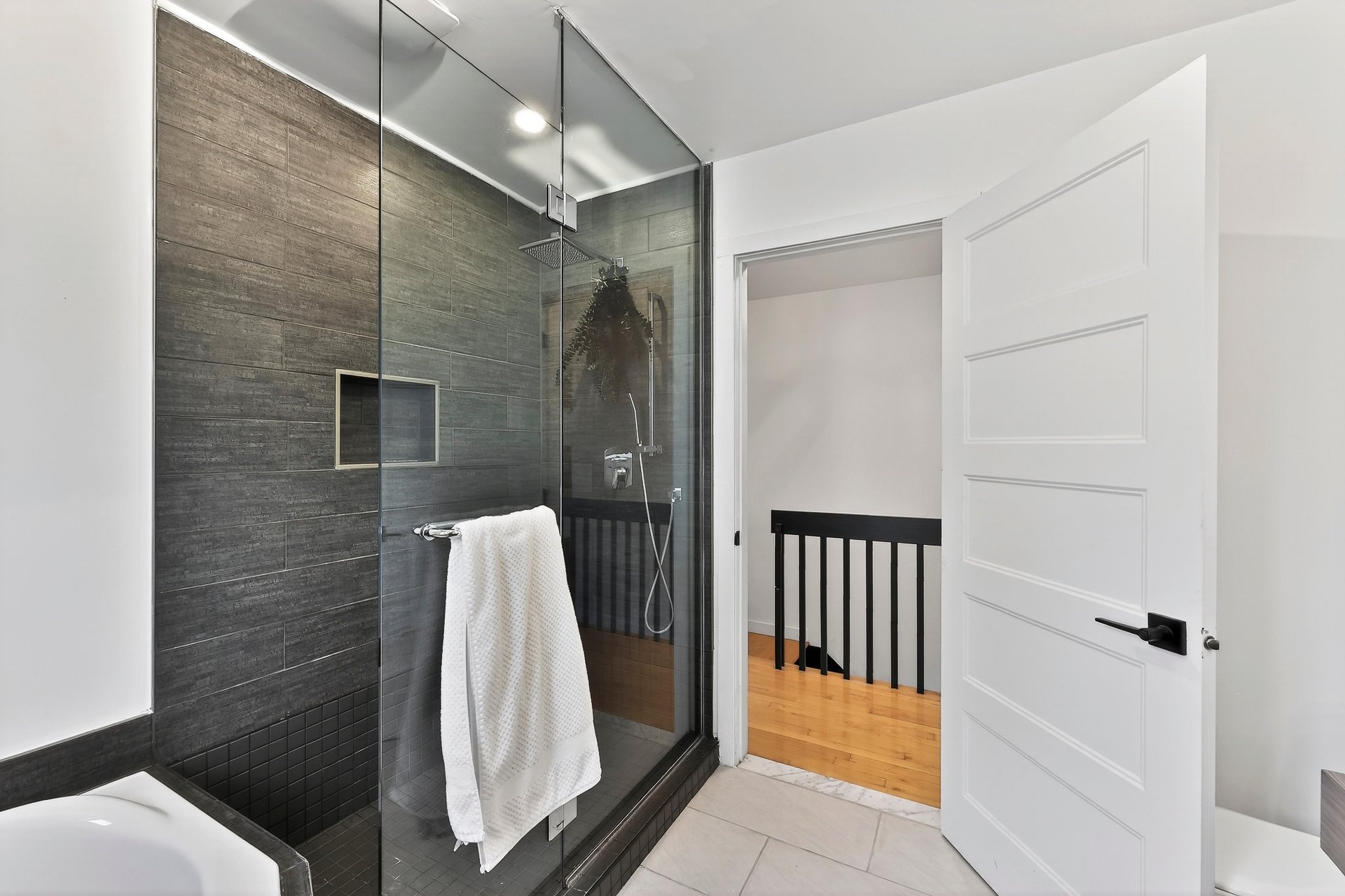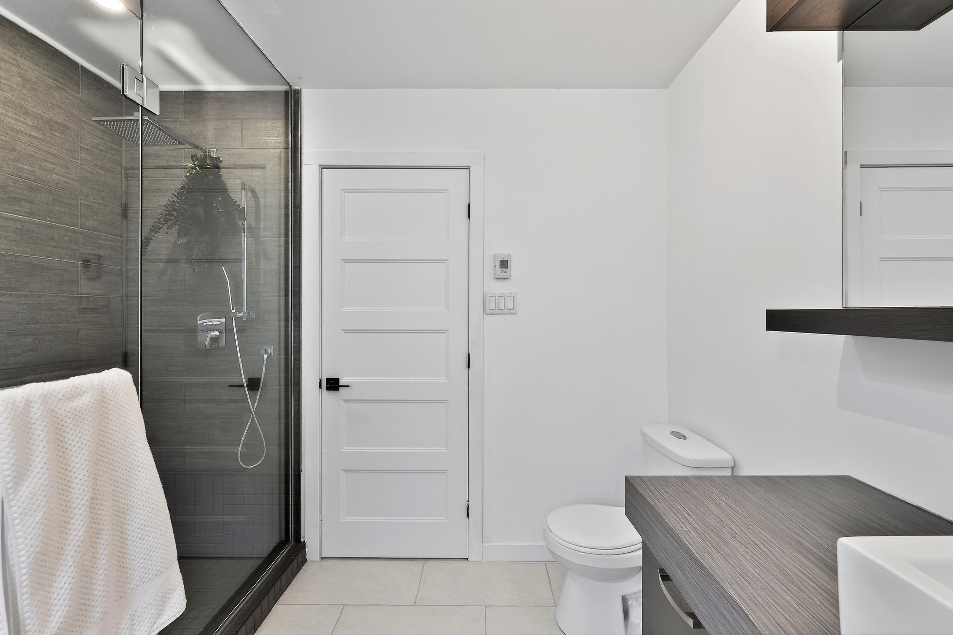 - La salle de bains du deuxième étage est équipée d'un chauffage au sol et d'une douche séparée