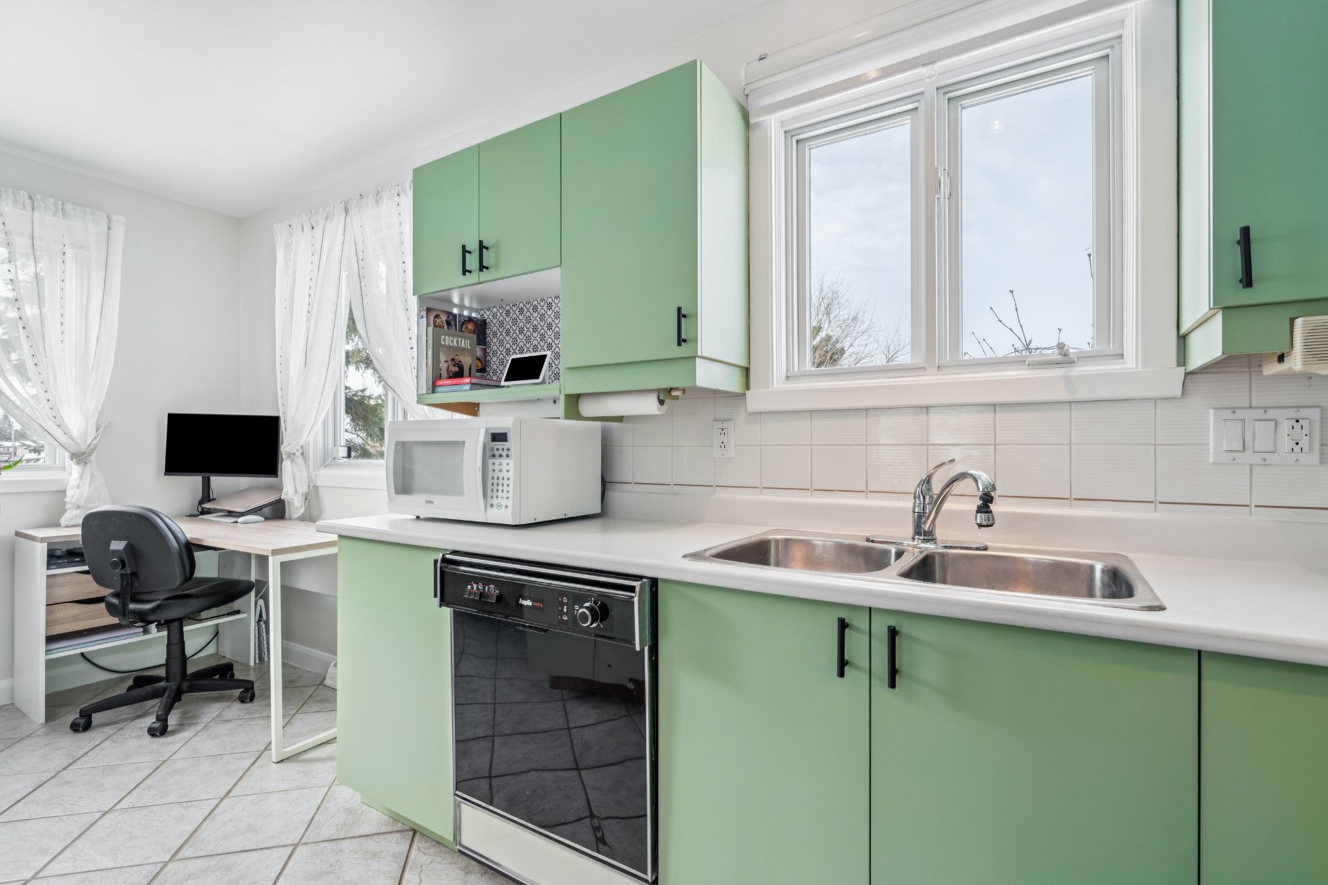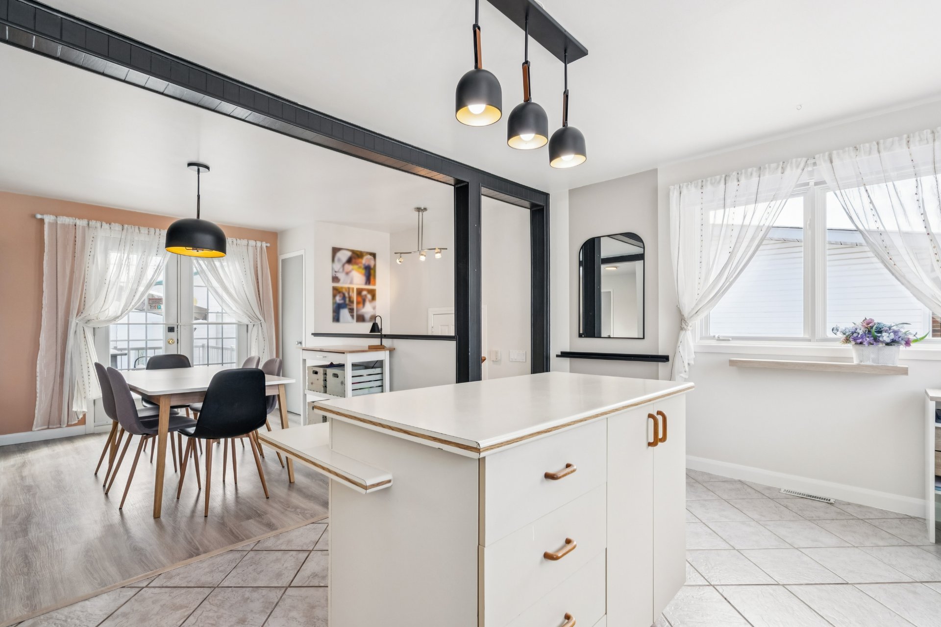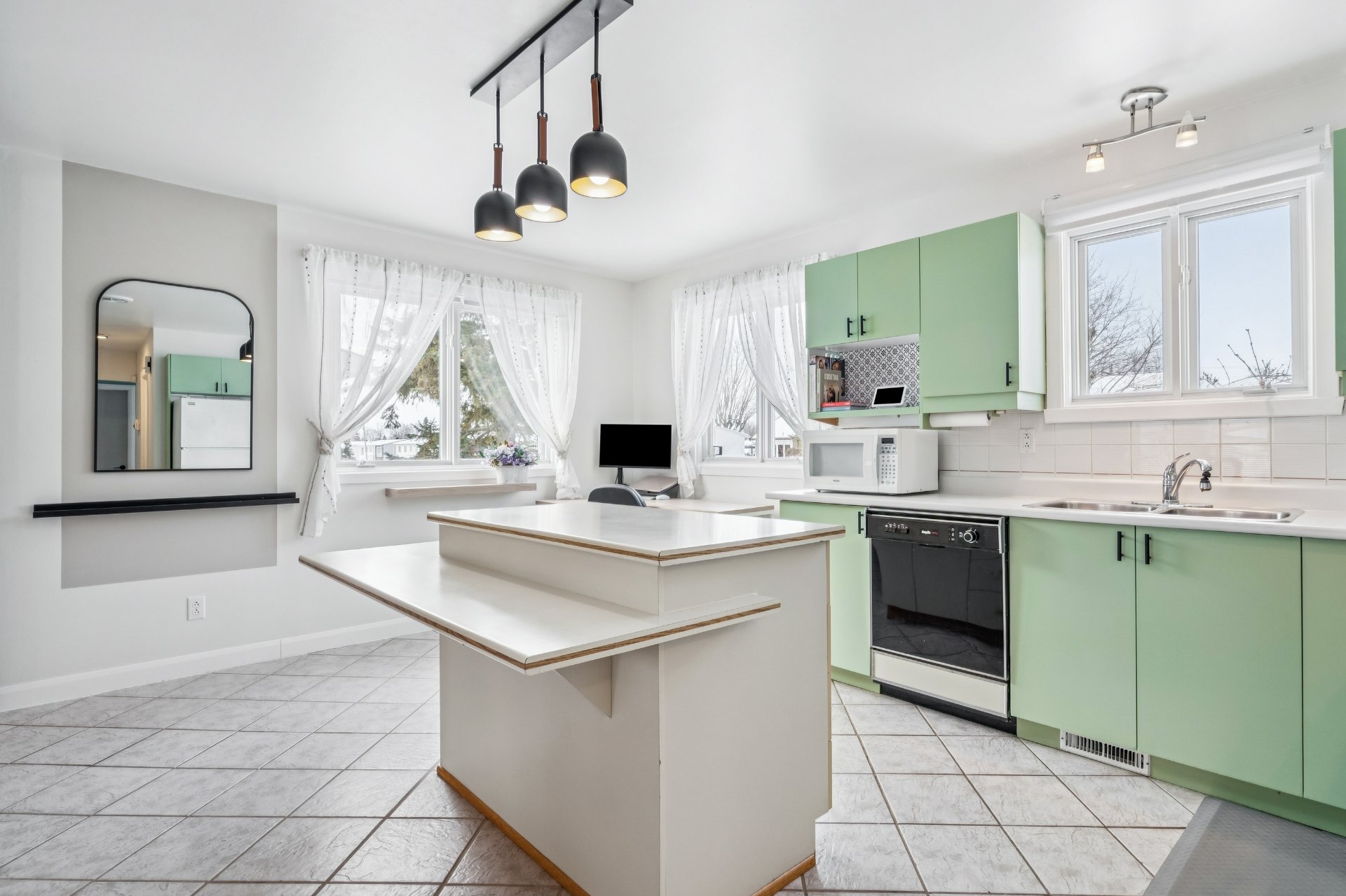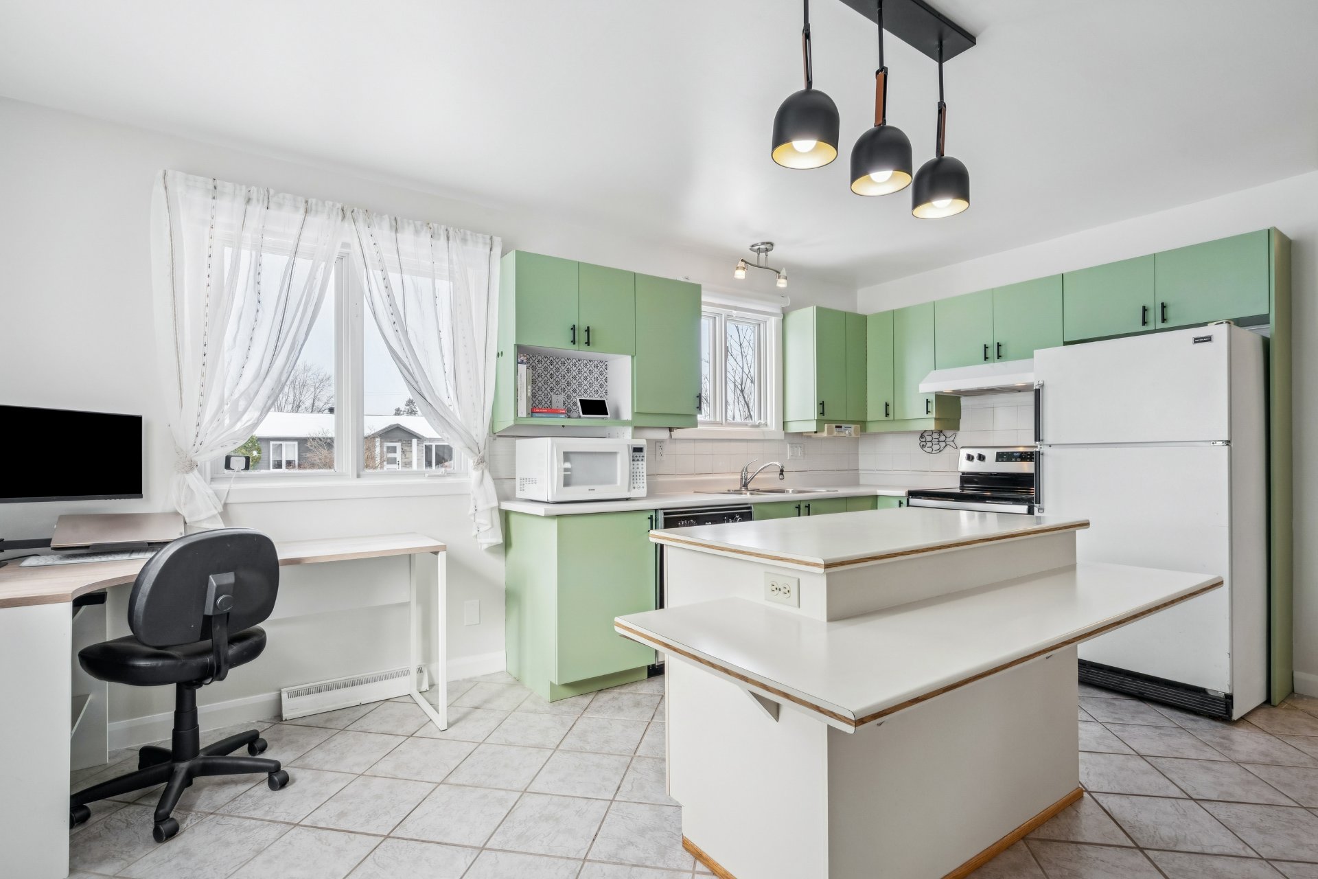 La cuisine, fonctionnelle et lumineuse, bénéficie d'un bel