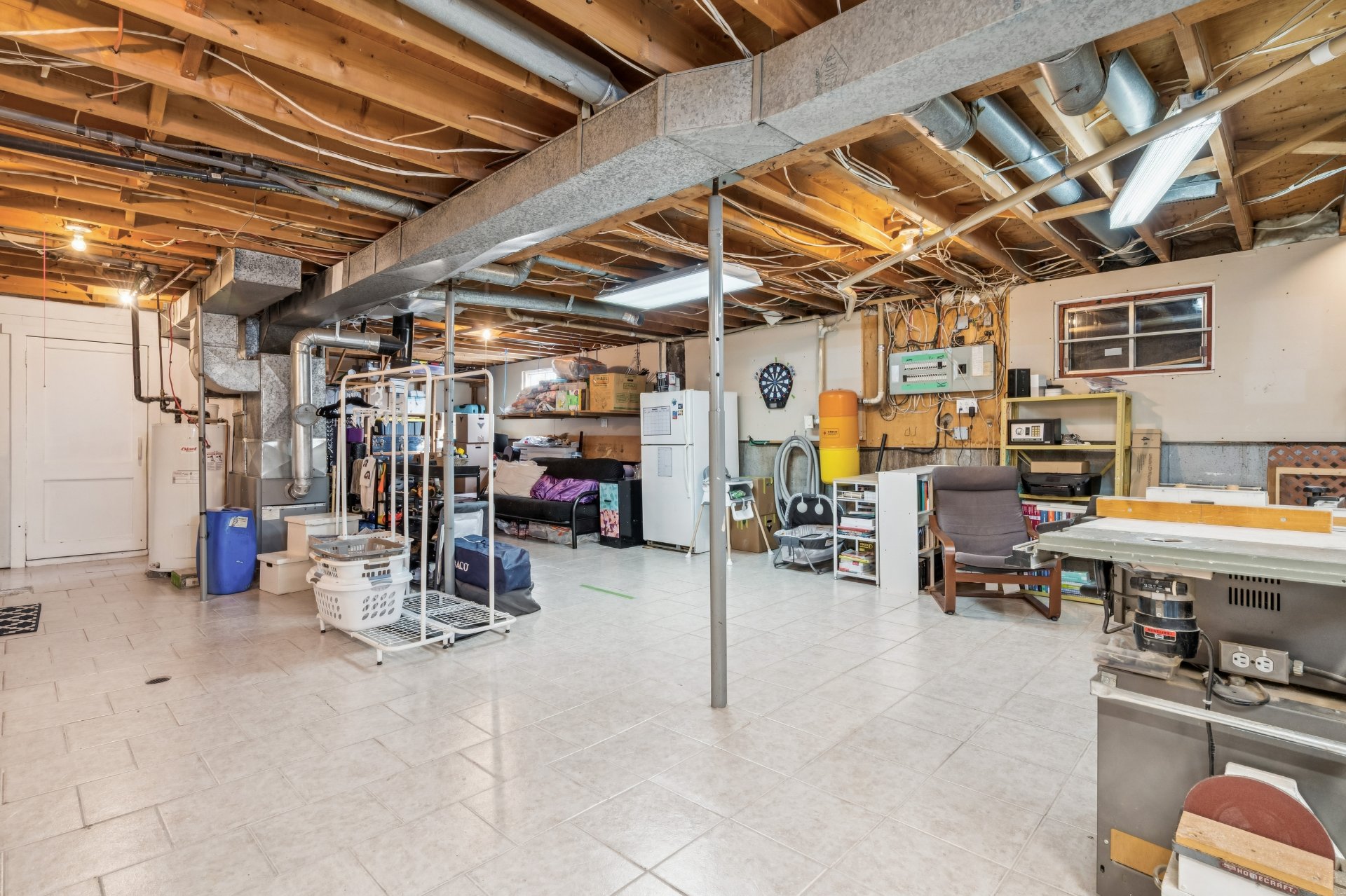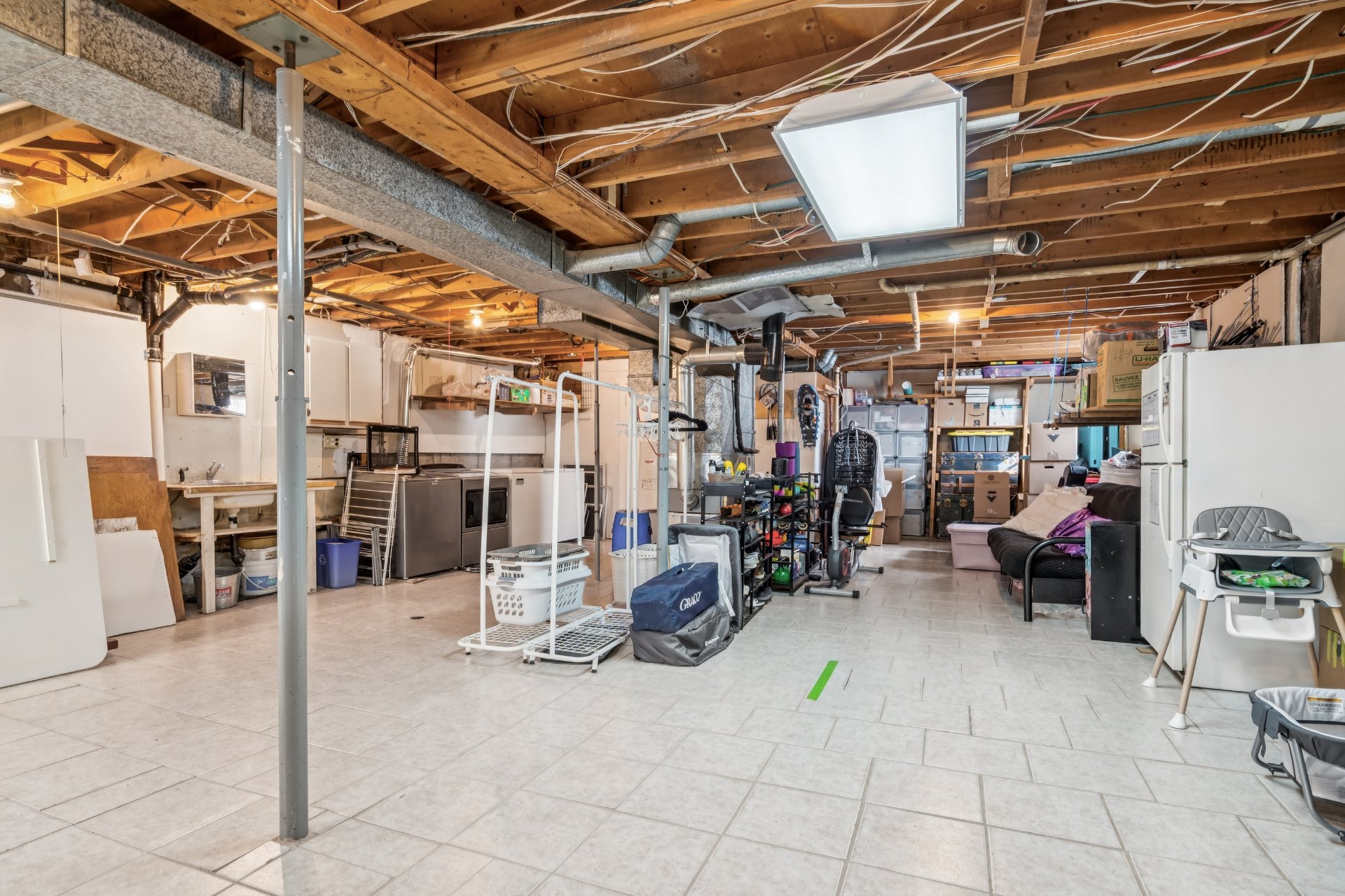 Le sous-sol, actuellement non aménagé, laisse libre cours à