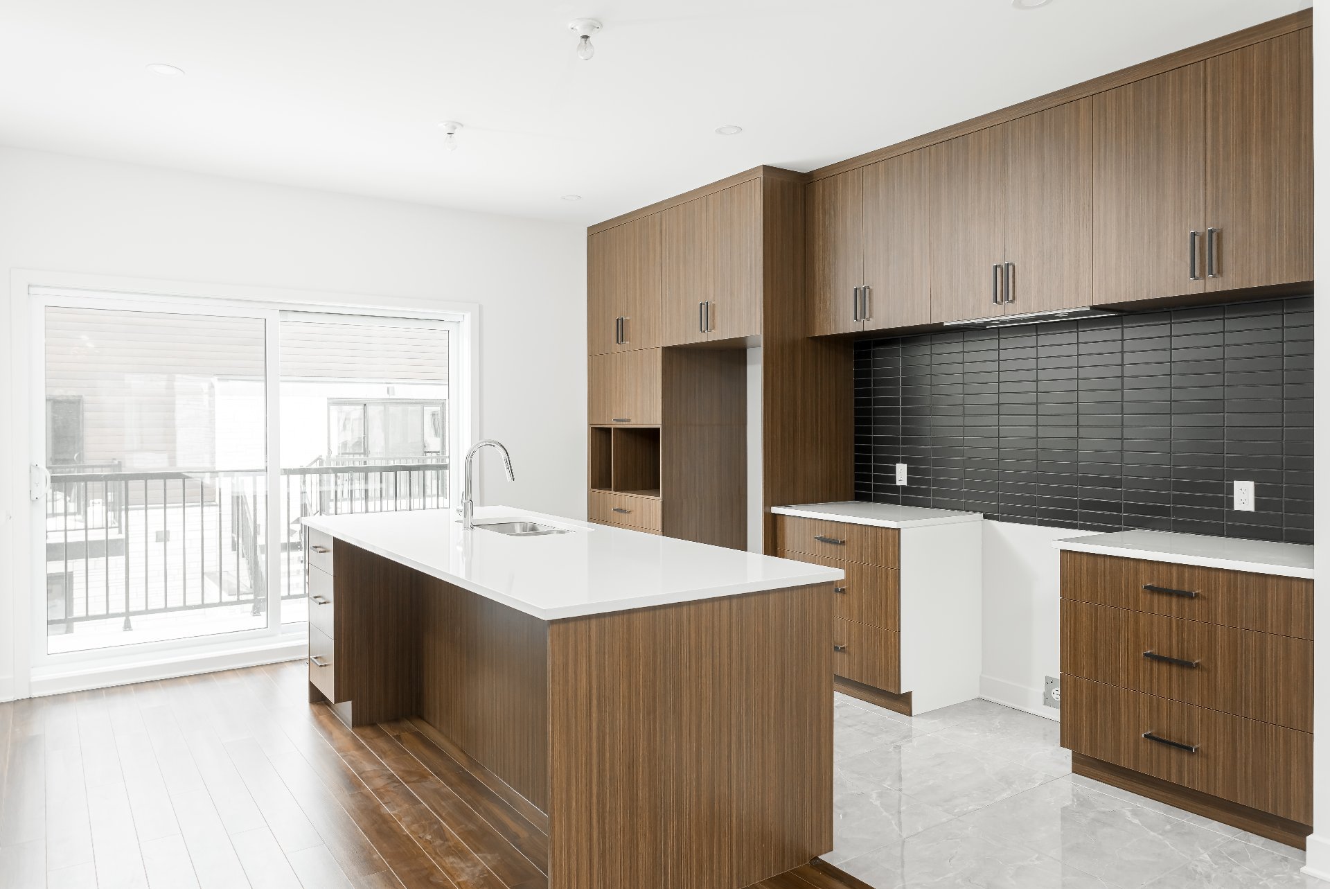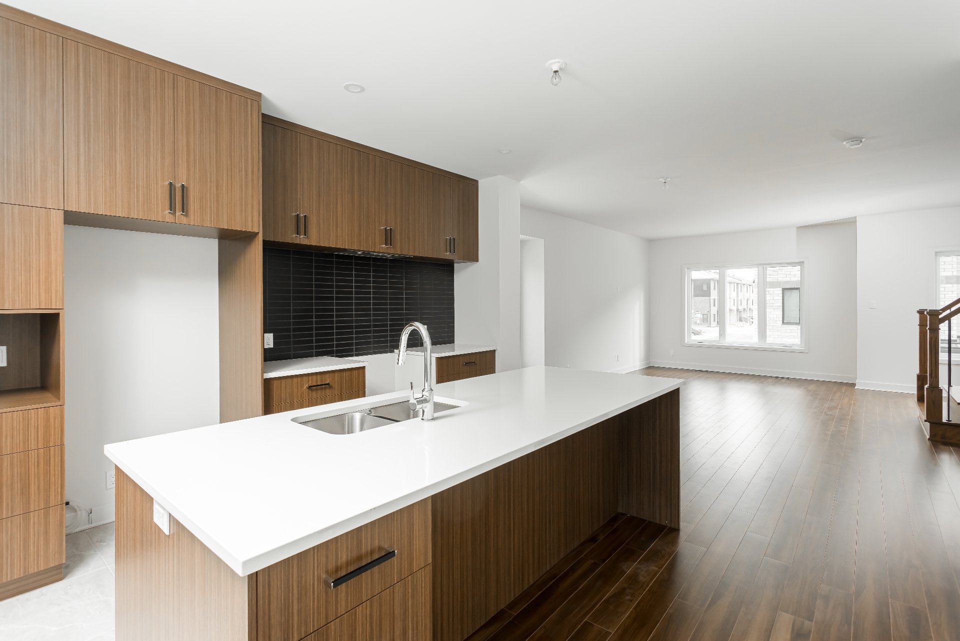 d'un grand îlot en quartz, d'armoires sur mesure ajoutées,