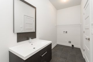 Une salle d'eau avec installation pour laveuse et sécheuse